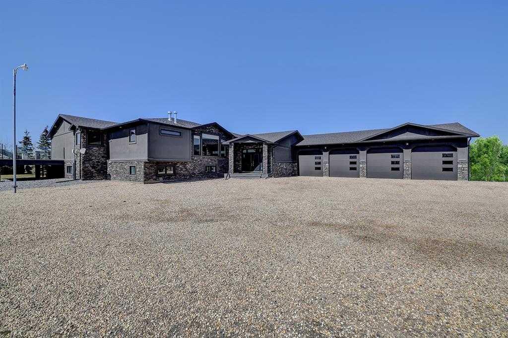 boasting spacious open floor plan that is perfect for both family living and entertaining guests. The large cook's kitchen is equipped with topof-the-line appliances, including built in Sub Zero fridge and freezer, Wolf Induction Cooktop, Dual Wolf Ovens, and Dual Dishwashers. The home features total of 6 bedrooms, 4.5 bathrooms, an office, and a large spectacular master ensuite that includes his and her walk-in closets and separate vanities, insulated, covered, and heated deck as well as a 1000 sq ft uncovered deck with a saltwater hot tub. In addition to the main floor, there is a huge basement that includes two bedrooms, a gym, an open theatre room, and an amazing full wet bar with built in appliances. Attached, 4 car, 42 x 36 garage with epoxy flooring and commercial fume hood for winter barbeques. Outside, the property has a large gazebo with a fire pit, windscreen, and custom rock wall. There is also a 40 x 50 cover-all building with a gravel pad and 2-16x16 overhead doors, a stocked swimming pond with cemented sides and tons of sandy beach and dock and a 2 Bedroom Forest River park model trailer with designated septic tank and cistern, separate power and gas hookups. Amazing 8,800 Sq. Ft. shop alone was over 1.4 million to build with 10 inch walls, four 16x16 ft. electric overhead doors, instrument air throughout, heated epoxy floor and radiant heating, 200 amp power, tool storage room, office, two 3 piece baths, upper mezzanine with a theatre screen, stereo system, full kitchen with granite countertops, and appliances. Currently zoned as Residential CR5, making this property perfect for both living and working. The owner spared no expense on this beautiful acreage, including approximately 3,000 tonnes of gravel with geosynthetic liner. There are also over 2600 large trees for added privacy and a complete irrigation system. This property is truly a rare find!