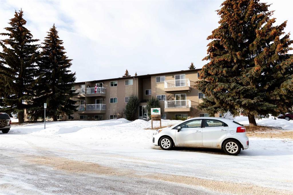 Affordable condo living right in Stettler, AB. This well-maintained property is perfect for a couple or single person looking to downsize or to finally have a space of their own space. Inside, there is a bright, open living room which leads out to an east facing balcony-a great spot to enjoy a morning cup of coffee. There is a lovely kitchen with wood cabinets and white appliances including an easy to clean, flat cooktop stove. The spacious, carpeted bedroom comes with plenty of closet space. There is a large front entrance with a mirrored, floor to ceiling closet, a storage room with washing machine, and a 4 piece bathroom. This unit has condo fees of $256.12 monthly which includes heat, water, septic, one parking stall, and exterior insurance. This fee also includes snow removal, garbage pick up, interior common area maintenance, and exterior building maintenance. This condo unit is located in a quite part of Stettler with nearby convenience store and playground. Stettler is a community-oriented town with a number of sports parks, walking paths, recreation centre, historical sites, and amazing restaurants and shopping.