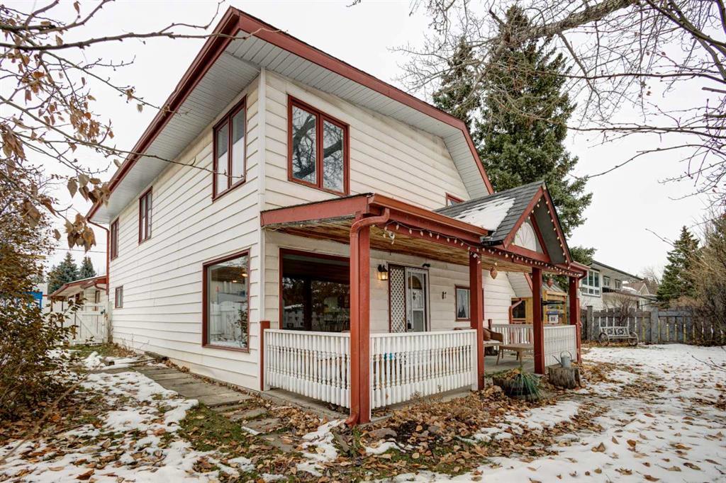 Tired of the same old cookie cutter homes in newer communities with limited lot sizes? Located on the top of the hill in Okotoks with fabulous views to the South and just steps to indulge in the trendy boutiques, galleries, restaurants, and cafes in the Olde Towne district. This country charm home features an inviting front verandah leading to the charm and character of this unique family home. Inside you’ll enjoy the spacious open living room, large dining room with wood burning fireplace and adjoining kitchen with double French doors leading to the huge side deck. This impressive main floor also features a private bedroom, 3-piece bath, 2 utility rooms with separate furnaces for each level and spacious rear entry to the breeze way connecting the oversized attached double garage. The second level boasts a large bedroom with full ensuite, a second upper bedroom with massive walk-in closet, large 3-piece bath and convenient upstairs laundry with newer wash and dryer. The cozy den between the 2 upper bedrooms could be converted to another bedroom or private office bedroom. Perfect for your beloved pets the private enclosed large yard offers a lot of room for your pets to run and play. The impressive custom built cat enclosure keeps your cats safe and comfortable while outdoors and provides a lot of fun with trees and ropes to climb and a heated house to keep warm while outside on a cold day. The adjoining tunnel from the home to the cat enclosure provides easy secure access in and out for your beloved cats. The breezeway features a convenient doggy door for dogs of all sizes to enjoy easy access in and out of the home anytime of the year with a fan to keep the area comfortable on the warm summer days. This home is also perfect for a renovation project or the 69ft x110ft lot is a prime redevelopment opportunity for a side by side or 4-plex,. Whether looking for an investment project or immediate redevelopment, this home offers excellent value.