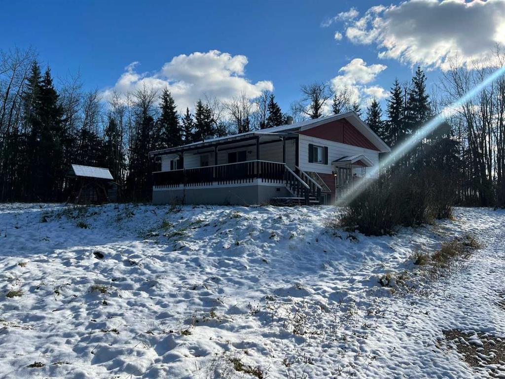 This property features almost 10 Acres, a 1,324 SF. bungalow home, large quonset, and several smaller out buildings. The main level of the home includes a bright living room with bow window and gas fireplace, a dining space open to the kitchen, your primary bedroom, and a 4pc. bathroom. Look forward to next summer on the expansive covered deck! The basement is fully finished with a family room that features a wood stove, two additional bedrooms, 3pc. bathroom, and plenty of storage. The basement can also be easily accessed from a separate entrance to the side of the home. Located just outside Plamondon with easy access to all services and shopping.