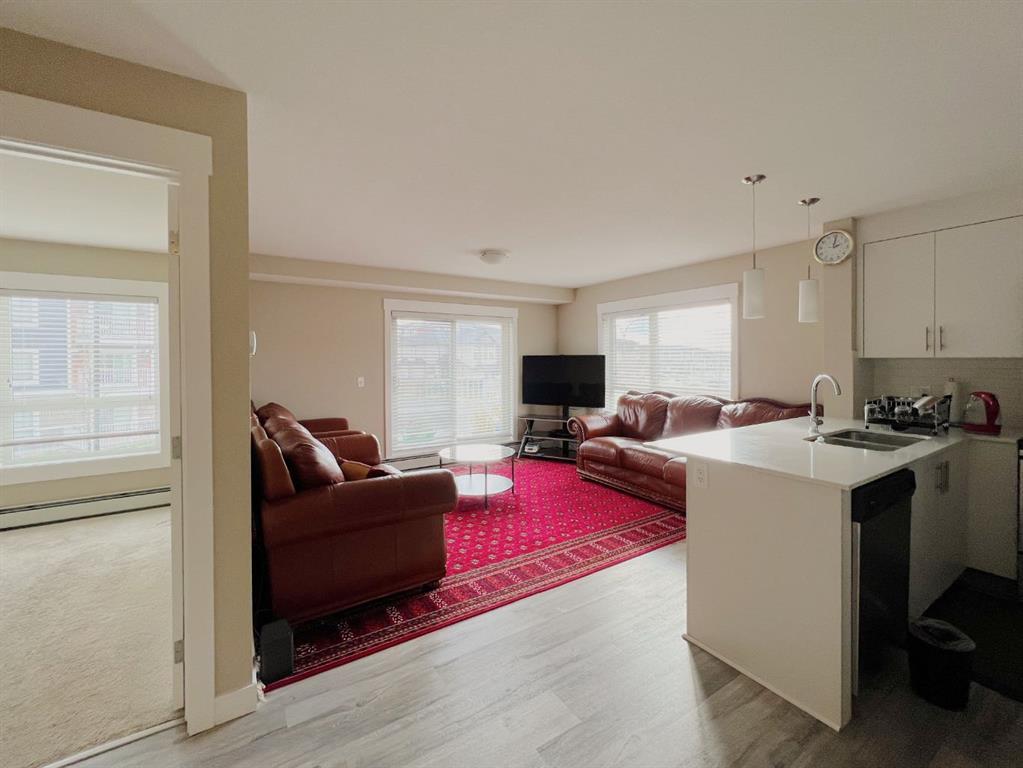 Situated in Orchard Sky, Skyview Ranch, this 2nd-floor unit offers 852 sq ft of space with 2 bedrooms, 2 bathrooms, a titled underground parking spot and an outside stall. Features include vinyl floors, a kitchen with quartz countertops and stainless steel appliances, a balcony, and a primary bedroom with a walk-through closet and ensuite. The property is well-maintained corner unit with tons of sunlight and good views. Conveniently located near green spaces, schools, restaurants, and major roadways for easy commuting.