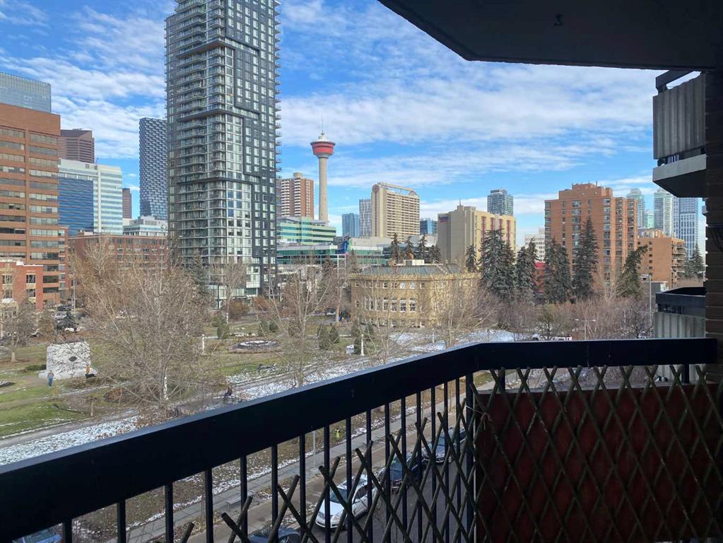 LOCATION LOCATION LOCATION. Welcome to a true downtown apartment! This one-bedroom condo with underground parking and a stunning million-dollar view of historic Memorial Park, the Calgary Tower & Calgary's downtown skyline beyond! The spacious living room spills onto a north-facing patio overlooking serene Centennial Park—a perfect backdrop for your morning coffee or evening unwind. With room for a kitchen table or a dedicated workspace. But the luxuries don't stop at your front door. This well-managed building boasts amenities that rival any resort—assigned parking, an indoor saltwater pool, and a state-of-the-art fitness center. Condo fees cover everything from maintenance and security to electricity, heat, and water. You're steps away from many of Calgary's incredible restaurants on 17th Ave or Stephen Ave, the LRT, and the Stampede Grounds. Book a showing today, it won't last long!