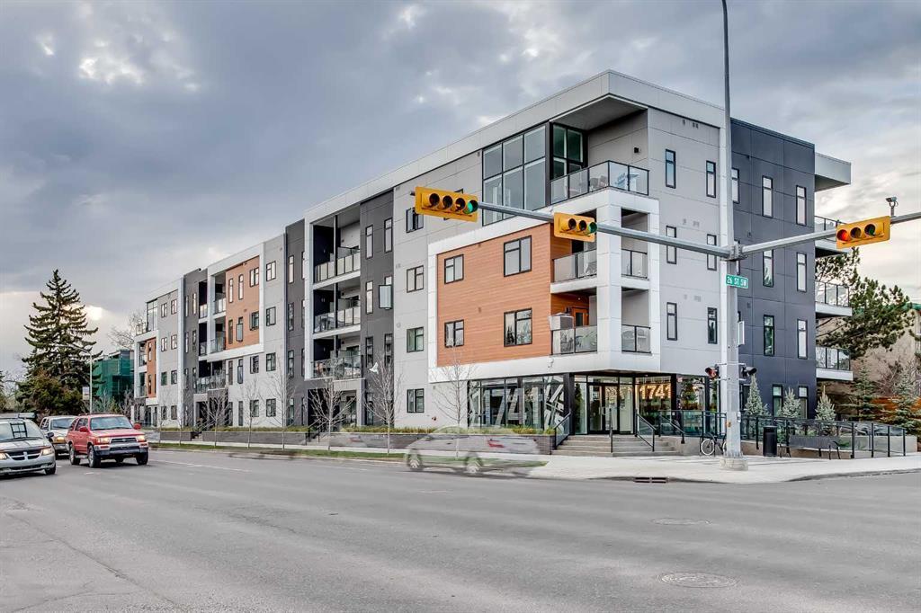 Welcome to 1741! This AIR-CONDITIONED, 2 bed, 2 bath condo features high end finishes throughout! 9-ft ceilings, an open floor plan and wide-plank engineered hardwood flooring are just some of the upgrades in this condo. The gorgeous kitchen features a large island with quartz countertops, beautifully designed modern cabinetry and stainless steel appliances including a GAS cooktop, a convection oven, an upgraded refrigerator and built-in microwave. 2 generously sized bedrooms located on opposite sides of the condo offer privacy between the two rooms. The primary bedroom features a walk-in closet and a ensuite bathroom finished with a marble-tiled glass enclosed shower. The 2nd bedroom also features a large closet with the 2nd bathroom across the hall also finished in a marble-tiled tub / shower combo. Additional features include a built-in desk nook for those working from home, BBQ with gas line, a heated UNDERGROUND parking stall and a separate storage LOCKER located on the same floor as the unit. Conveniently located 2 blocks from the Shaganappi Point train station, within a couple of minutes drive to 17th Ave restaurants and shops and within walking distance to the Shaganappi Golf course, Nicholls Family Library, Westbrook Mall, grocery stores, recreation centers, playgrounds, and off-leash dog parks, this unit is a must-see! Call to book your private showing today!