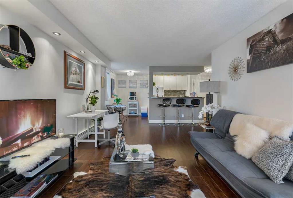 BEST VALUE in DOWNTOWN Calgary! Perfect FOR FIRST-TIME BUYER OR INVESTMENT PROPERTY for this LOWEST PRICED " END UNIT " CONDO LIVING! ~~ IMMEDIATE POSSESSION is AVAILABLE ~~ Come, see, and buy this SUPER AFFORDABLE lifestyle option under $200,000. Upgraded with TASTE & STYLE, this BEAUTIFUL one-bedroom Condo unit provides open-concept living with a warm feeling of home. Features UPGRADED LAMINATE FLOORING, Designer Lighting, Bright Modern Kitchen cabinets for your Gadgets, White KITCHEN APPLIANCES, and a good-sized bar island making the kitchen such a FOCAL POINT of the condo. You also have the added BONUS of In-SUITE LAUNDRY. The dining area is spacious enough to host dinner parties and entertain guests. After a long day at work, unwind in the comfort of the spacious living area. You can also step out and relax on the private covered balcony, which boasts stunning views of the park and downtown. The balcony offers ample space for a BBQ, table, and chairs. The master bedroom is large enough to accommodate a king-sized bed if desired. This unit also comes with one parking stall. Additionally, it is located in a fantastic concrete building that is equipped with elevators, an indoor saltwater pool, and a well-stocked exercise room and this is conveniently situated only 3 blocks away from trendy 17th Ave and downtown Calgary! This home is UNIQUE and UNMATCHED in its beauty, This one won't last! Schedule a PRIVATE SHOWING and make an OFFER today before it's too late !!!