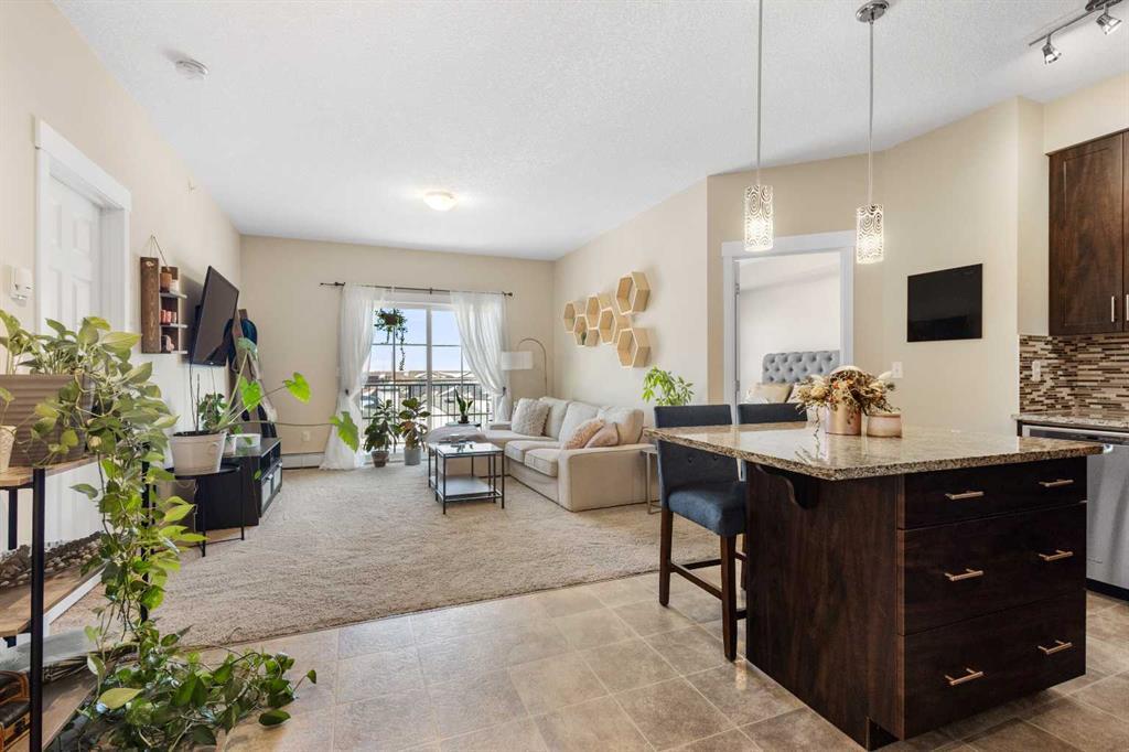 **TOP FLOOR UNIT WITH UNOBSTRUCTED VIEW AND TONS OF NATURAL LIGHTS WITH SE FACING! ** Welcome to your dream home! This impeccably maintained top-floor unit boasts 2 spacious bedrooms (almost identical size), each with its own bathroom (ensuite for primary and the 2nd full bathroom has a connecting door to the other bedroom), making it perfect for roommates, a small family, or guests. The well-designed kitchen features a generous granite-topped island, stainless steel appliances, and ample cabinetry for your culinary adventures. Sunlight streams in from the southeast exposure, brightening the open layout. Enjoy the convenience of full-size in-suite laundry, abundant closet space, a garburator, an extra assigned storage cage just in front of a titled underground parking spot with elevator access. Your condo fees even cover heating costs! Located across from a park, with visitor parking at your doorstep, and easy access to 130 Ave SE fully of shops, restaurants, groceries and so much more, this is the ideal place to call home. Don't miss the opportunity to make it yours – schedule a showing today!