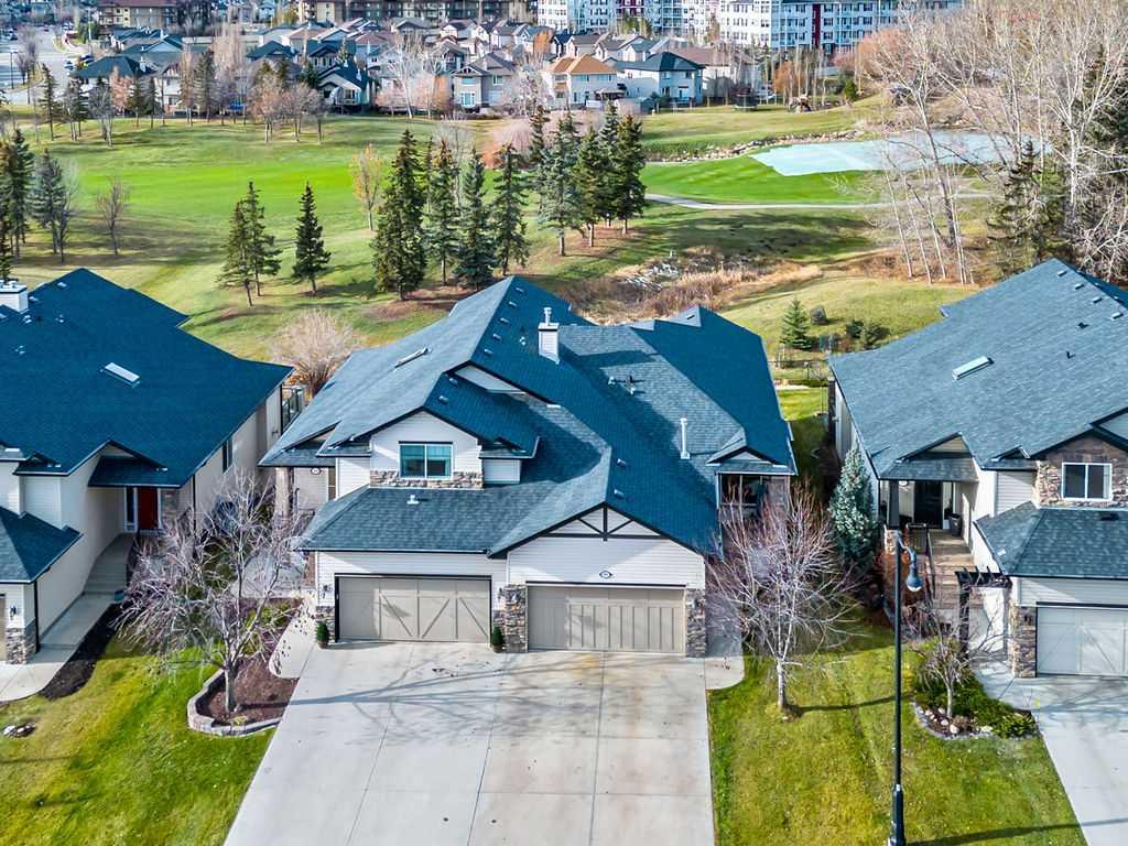If you've been searching for a beautifully renovated walk-out bungalow with GORGEOUS MOUNTAIN & GOLF COURSE VIEWS in an established lake community with NO CONDO FEES, then this is the one! Step in (click 3D for virtual tour) and you will fall in love with this home's warm ambiance, superb updates & well laid out spaces. MAIN LEVEL features private study w double barn doors, kitchen with new ss appliances, white cabinetry, quartz countertop & 2 oversized pantries, living room with gas fireplace and access to spacious covered deck with composite board & seamless glass railing for perfect views of golf course & mountains. Primary bedroom with large window & views, plus stunning ensuite bathroom w white cabinetry, double vanity, gorgeous soaker tub, glass shower & large walk-in closet create the perfect retreat. Main floor laundry and half bath complete this level. LOWER LEVEL features two additional large bedrooms, full bathroom with huge steam shower, double vanity, soaker jetted tub & in floor heat, and huge rec room with in-floor heating throughout. Did we mention A/C, new blinds, new garage heater, and new water softener? NEIGHBOURHOOD is lovely and calm, with the amazing perk of all snow removal and front/back lawn maintenance included for just $110 monthly HOA fee (note there are no condo fees). Home owners can plant flower beds and additional trees as they wish. The golf course main building is a short walk away to enjoy dining, a game of golf or even mini golf. Neighbourhood is also part of the Crystal Shores, where home comes with year-round lake access for swimming, boating, fishing, skating & more. RECENT UPDATES (2019-2020) $137K+ renovation included new front door, new paint, updated cabinetry, new quartz, new faucets sink & garburator, new appliances, new pantry, new office doors, new flooring, new backsplash & tile on fireplace & ensuite, new ensuite tub & shower glass & toilet, new blinds, new lighting, new furnace motor, new A/C, new garage heater, new water softener & fireplace fan, new extended rear deck with composite board & cover & seamless glass railing. Lake membership $262.50 annual fee. SHOWINGS START FRIDAY.