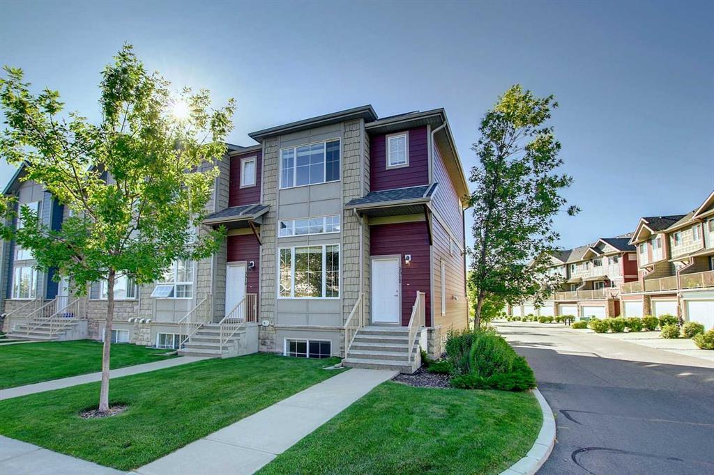The perfect family home in the desirable community of Bayside. This end unit 4 Level Split townhome has everything your family needs. When you enter the home from the front you will notice the nice tall ceilings and large windows giving natural light to your spacious living room with brand new carpet. Up 1 level is completely tiled and includes a powder room, a great desk or display area over looking the living room and a massive kitchen. The kitchen is complete with an island, large corner pantry, SS appliances, and granite countertops. This level also leads out to your beautiful private balcony, which runs the length of the unit and overlooks the community playground. The upper level features 3 good sized bedrooms, 2 full bathrooms, and laundry room. The primary bedroom has a 4pc en-suite bathroom and a great walk in closet. The basement level is also fully finished and would make a great second living room for staying cool in the summer or would be a perfect play area for children. Parking can always be an issue in these communities, not only does this unit feature a double attached garage. There are also 2 spots available on the parking pad and street parking available in the front. Storage is also not an issue in this unit. There are many closets and under the stairs storage area for everything you don't want on display. The community is close to schools, shopping, an outdoor skating rink and has quick access to the new overpass for a quick commute to the city. This truly is a must see. Book your showing before its gone!