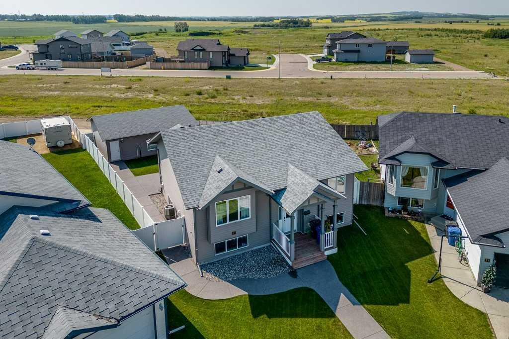 CUSTOM BUILT OPEN CONCEPT HOME THAT IS 5 BEDROOMS/3 BATHS WITH OVERSIZED DETACHED GARAGE ON LARGE LOT IS FOR SALE IN PENHOLD! Step into the vaulted main floor area and it features a stylish gas fireplace in the living room, the kitchen has a eating island plus stainless steel appliance's with hickory cabinets, Dining area has a door to enter the good sized deck to the BBQ(gas hookup), there are 3 bedrooms (master has a 3pc ensuite) plus 4 pc bath for others to use. Head downstairs to the Rec room that has another gas fireplace, 2 more bedrooms, 3 pc bath plus a utility room with the washer & dryer, center vac and extra wash sink. The home also has air-conditioning. Some other items that have been done in 2022 are new shingles and the furnace. All appliances have been replaced in the last 2 to 4 years (but 1), in 2023 the house has been updated with fresh paint inside and a new hot water tank installed. Outside features are: Fenced with very little landscaping to maintain plus aggerate walk ways , large area to put deck furniture, back gate access to park your RV, trailer or boat. The garage is 24'10"x28'11" and it has a gas heater, floor drain plus the doors are 9'x9'. This lot is extra large and located in a quiet area of Penhold.