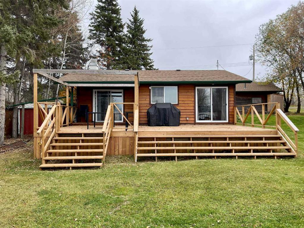 Welcome to this beautiful 4 season cabin located on Mission Beach in Lac La Biche, offering stunning lake views and beach access all year round. This cabin has undergone extensive updates in 2021 and 2022, including a new gas furnace, electrical and electrical panel, plumbing, new flooring, new windows and doors, insulation throughout (including spray foam insulation in the crawl space), and new cedar siding. The primary bedroom features a large patio door leading to the back deck, allowing you to wake up to the breathtaking view of the lake every morning. There is also a second bedroom for kids or guests. The 3-piece bathroom includes stackable laundry, making it convenient for all your laundry needs. Step inside this charming cabin and experience the warmth and coziness of the interior. The cabin's interior features a rustic and inviting cabin feel, with butcher block countertops, wood-burning fireplace, and beautiful pine ceilings and walls. The cabin's flooring has also been updated, adding to the overall aesthetic and charm of the space. This cabin is equipped with a built-in speaker system, both inside and on the deck, perfect for entertaining guests. A large new deck was also built in 2021, providing ample space for outdoor activities and relaxation. The double detached garage is a bonus feature, with a gas line ran to it for a potential heater. There is also a trenched line for a bunkie, providing an opportunity for expansion in the future. Currently, the cabin is tied into MUNICIPAL WATER & SEWER. This cabin is perfect for those seeking a peaceful retreat away from the hustle and bustle of the city. With its stunning lake views and beach access, it offers the perfect opportunity to enjoy all four seasons in comfort and style. Don't miss out on this incredible opportunity to own your own piece of paradise on Mission Beach in Lac La Biche