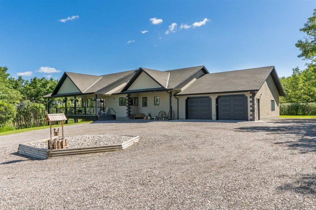 This is how Country living should be. Location, mountain view, privacy. Come see this great family home on 5.5 acres, located on a quiet, paved, dead end road featuring gorgeous, rolling foothills and mountain views, only minutes from south Calgary. A gentle sloping curved driveway, leads you to this well kept, fully landscaped, park like setting, and 2209 sq. ft, walkout bungalow, where all you have to do is open the door and live. Updated landscaping, deck, garage doors and exterior that includes stone accents, gives this home great curb appeal, and impresses all that come to visit. As you enter through the main door, the vaulted ceilings of the living room and spacious kitchen create a wide open country feel that tells you this is what you have been searching for. Hardwood floors and walls of windows make the outside a big part of your inside living. Set up for entertaining, or the family that enjoys outdoor living, the massive covered deck lets you take in those panoramic mountain views, and the conveniently located firepit is the perfect place to gather to enjoy long summer evenings. Friends and family will to want to come visit and with 6 ‘plus’ sized bedrooms they can stay as long as you like. There are two horse pastures, one with a hydrant and electricity for watering the horses and the large producing garden. After an active day on the "ranch" why not curl up beside the stone faced, gas fireplace or escape to the serenity found in the huge master bedroom, in the 4 pc ensuite and featured walk in closet. The over sized double attached garage, and outside sheds, allows storage abounds both inside and out. This is the perfect location, only 30 min. to downtown Calgary, 10 minutes to Okotoks or the ring road at Shawnessy, and located within 5 min of Strathcona Tweedsmuir school and the Calgary Polo Club. The privacy and location of this Country oasis is second to none. Come see how country living should be.