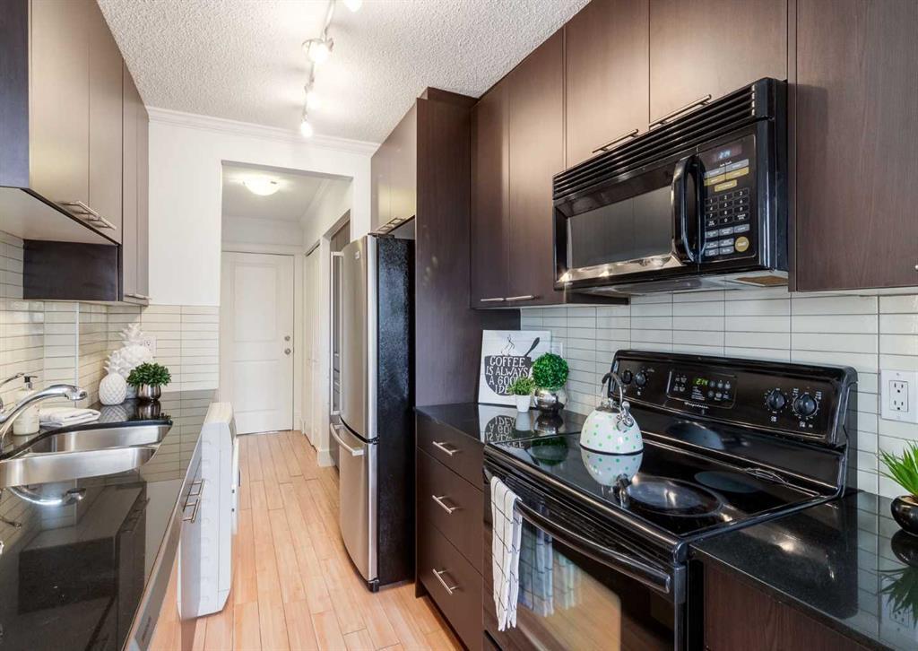 FABULOUS 2 Bedroom "WINDSOR PARK CONDO" ideally located only 1 block from CHINOOK MALL & TRANSIT, where convenience seamlessly blends with the vibrant inner-city lifestyle! This Beautifully updated 2 bedroom condo has a FULLY FENCED FRONT YARD, which is a RARE FIND! Stunning black metal surrounds this enormous front yard providing a wonderful opportunity to enjoy a grassy yard with trees and easily accessed thru the living room patio doors. Imagine enjoying get togethers with your friends or family in this ideal outdoor living OASIS! OR watching your child play or keep your pets safely enclosed! Truly rare.... The SPACIOUS OPEN CONCEPT FLOOR plan showcases NEW CHIC paint thru-out, New Crown Molding, Lovely GRANITE COUNTERS, Trendy Tiled Backsplash , DESIGNER light fixtures, Newer STAINLESS-STEEL fridge & dishwasher, plus more! An abundance of cabinetry, pantry organizers and counter space create the ideal kitchen, adjacent the bright and sunny dining room. Large living room will impress with patio doors leading to a covered outdoor barbecue area. LARGE PRIMARY bedroom will easily accommodate a king size bed and several pieces of furniture. 2nd Bedroom is also generous in size! 4 pc bath features a lovely GRANITE counter , newly finished shower surround, New light fixture and tiled flooring. Convenient insuite Laundry which also features an abundance of shelving for storage ! This building is CONCRETE and Brick making it very quiet. It is also very well kept which is evident as you walk down the hallway and notice how clean and modern looking it is. Assigned parking has an electrical outlet and only steps from this condos front door. An ideal choice for first-time homebuyers, investors, or downsizers, this condo is ready for IMMEDIATE POSSESSION.