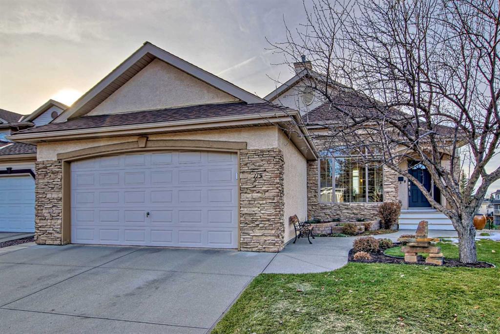 STUNNING is the only way to describe this spectacular 3 bed/2.5 bath walk out bungalow complete with mountain views and backing onto the 11th green of Douglasdale Golf Course! Entering the home, your eyes will be drawn to the gorgeous red oak hardwood floors throughout the main floor, multiple display ledges and soaring vaulted ceilings. At the front of the home you’ll walk thru classic French doors into a sunny office space. To the left of that you will find a large powder room, main floor laundry & mud room leading to your large front attached garage complete with a 220V outlet for EV’s & epoxy coated floor. Walking towards the back of the home you’ll find a large dining room at the mid point, perfect for celebrating family gatherings. The open concept continues on to the back of the home that features a white kitchen with granite countertops, large island, walk-in pantry & deck access. To the left is a large living room, perfect for entertaining. The show stopping features to this area is the three sided fireplace dividing the living & kitchen nook areas and the large triple pane picture windows (2021) than run across the whole back of the home giving you stunning mountain & golf course views. Completing the main floor is your huge primary bedroom featuring a huge walk in closet w/built in wall safe, large window with gorgeous views and a spa like ensuite with large jacuzzi tub, glass enclosed shower, double sinks, and heated floors, a true sanctuary! The walk out lower level features 9' ceilings, a large recreation/TV area w/huge triple pane windows (2021) and recessed ambient lighting in the tray ceiling, a games area perfect for a pool table, as well as 2 large bedrooms and a 4-pc bath, as well as plenty of storage. The back storage room has a built in workbench & cabinets, perfect for the craftsman/woman! Outside you’ll find a beautifully landscaped yard w/dog run & shed, and recycled rubber patio, perfect for watching the 11th green with a glass of vino! The community includes plenty of walking trails & greenspace, close to schools & shopping plus easy access to Deerfoot Tr. Other improvements on the home include skylight(2021), 2 high efficiency furnaces (2020), AC & heat pump (2023), hot water tank (2020), water softener (2020), and garage door opener(2022). This gorgeous property will not last; book your showing today!