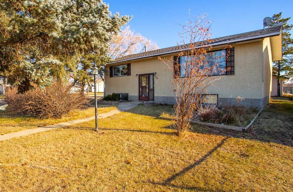 Affordable 4 bedroom Bi-level with over-sized double car garage only 20 minutes from Camrose. You will love the very bright, semi open concept with a huge living room and beautiful dining area leading into the bright kitchen. Plenty of space for your family with 2 bedrooms up and 2 bedrooms plus a spacious rec-room in the basement. Well treed and good sized yard plus a 26' x 24' insulated garage! This property has seen many recent upgrades (including new flooring & doors on the main floor). Some reno's in the basement are still to be completed. Great opportunity to put the finishing touches on, and great almost instant equity.. Bawlf is a great community with one of the best K-12 schools around!