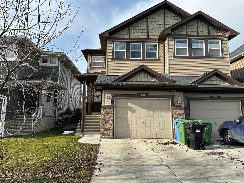 ** Make your First Visit through the 3D Tour**. Imagine backing onto a green space and having your own sunny south backyard space to enjoy. This 3 bedroom up attached home (no condo fees) with an upstairs laundry and single attached garage could be yours at an affordable price in this challenging market. As you enter this home, you’ll enjoy maple hardwood through most of the main floor. A large open foyer has ample places to store your jackets and shoes. The heart of the home has a galley style kitchen with a big island that is conveniently one level. Lots of countertop space and cupboards in this kitchen along with a pantry. Stainless steel appliances come with this home which is a bonus. The back of the home has the dining area which is a good sized spot for a big table and a family room area that fits the couch, coffee table and your TV. A French door leads to the sunny south deck and a backyard that has tons of room for the kids to roam and lots of space for your backyard furniture. Go upstairs to find 3 good sized bedrooms, 2 full 4 pce baths and an upstairs laundry with a linen closet and shelf. The basement is unspoiled and has a rough in for your future bathroom. It does have 2 big windows that provide lots of natural light. Fabulous location with playground & park around the corner, transit, schools, Costco, Walmart, T&T, Coop, Freshco and no frills within a few min drive, plus quick and easy access to the airport and Stoney Trail.. Don’t wait on this one or it will be gone before you know it.