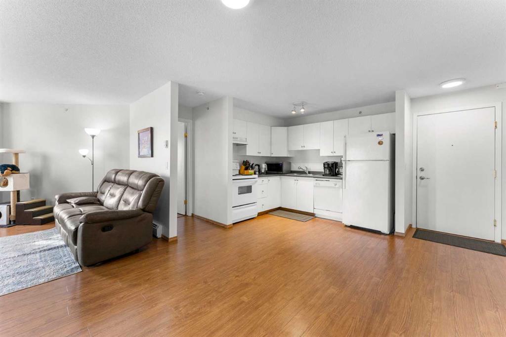 EXCELLENT OPPORTUNITY to purchase a lovely UPDATED 2 bedroom, 2 bathroom condo, CORNER UNIT, flooded with NATURAL LIGHT, PET-FRIENDLY complex in an excellent location! This condo has the best views because of it's location. It features an OPEN FLOOR PLAN, laminate flooring throughout, bedrooms are separated by kitchen/living room areas for privacy. The master bedroom features a WALK-IN CLOSET, room for a king sized bed and FULL ENSUITE. The second bedroom is adjacent to a renovated 2nd bathroom. Both bedrooms are well proportioned. The kitchen is open to the dining space and living room area. The laundry room with storage completes the condo! Off the living room there is access to a PRIVATE BALCONY - room to relax and enjoy a BBQ while OVERLOOKING ELLISTON PARK - beautiful views and open spaces! This is a WELL RUN COMPLEX with a very PET-FRIENDLY POLICY allowing dogs/cats (see bylaws in supplements) - there is even a dog run area attached to the building! All this is in an excellent location across from Elliston Park where you can enjoy walking paths around the pond, an off leash dog park, playground and year round activities including the well know fireworks at GlobalFest. This well run complex is also conveniently located close to Stoney Trail, Deerfoot Trail, shopping including Costco/Walmart, etc. and public transportation! This complex is SAFE and SECURE, condo comes with a conveniently located parking stall, current owner also rents a 2nd parking stall. Condo fees include all utilites (electricity, heat, water, sewer, garbage etc.) so very affordable!