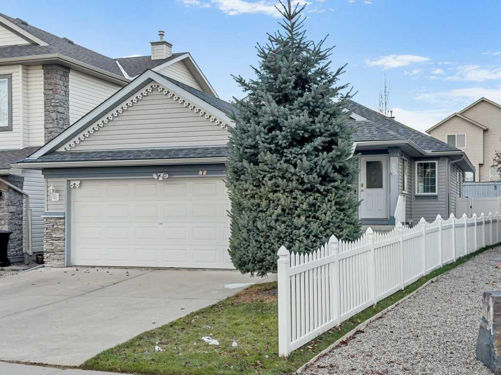 Great detached bungalow offering 1 bedroom and a large den with 2 full bathrooms and a great room design all on the main floor with a double attached garage located on a quiet street! This home offers an open concept through the kitchen, eating area, and living room with gas fireplace. The kitchen offers an island and some newer appliances. The open concept creates a great living space. The master suite features a full private bath. There is an additional full bath on the main floor as well. The main floor office/den was converted from a 2nd bedroom at the time of construction. There is main floor laundry as well. If you are looking for more living space, the lower level is unfinished and waiting for development. There is a "bathroom" started but is not functional in the lower level. This property has a sunny west backyard and is fully landscaped with a fence and deck. Great open concept plan with full main floor living and the option for more space with future basement development!