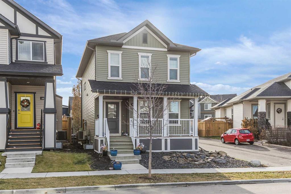 GREAT THINGS COME TO THOSE WHO DON'T WAIT and WANT A BIG 31' x 22' GARAGE! A beautiful 2 story home accented with a full verandah detail and located on a quiet street in the family-friendly community of Ravenswood. Highlights include 3 bedroom / 2.5 Bath / Air Conditioned / Triple detached garage. All on a corner lot with paved alley access. The main floor boasts an open floor plan with an open-concept kitchen, dining & family room. The Chef's Kitchen features UPGRADED rich wood style cabinets and granite counters, a Stainless steel under-mount sink, a flush eating bar, and UPGRADED STAINLESS STEEL appliances with glass tile backsplash accents. Dramatic central island with more cabinet storage. Great for entertaining. The second floor includes three bedrooms, a laundry room & 2 full bathrooms. The spacious primary bedroom has south-facing views, high vaulted ceilings, a big walk-in closet & ensuite with dual sinks. A fantastic partially finished basement offers room for a future recreation room, storage room, 4-piece bath, and bedroom. Family-friendly backyard LOW MAINTENANCE, fully fenced Yard, 13 x 10 wood deck off the kitchen for BBQs, extra parking, and shed.