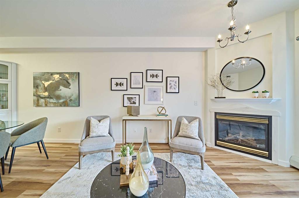 With the best mountain view in all of Tuscany, you will never be bored at the 40+ adult living complex of Sierras of Tuscany! So much to do and enjoy over here! The 42-seats MOVIE THEATRE is a perfect place for your family and friends’ movie night! The ART AND CRAFT ROOM is a fantastic place for your hobbies of artwork, quilting and sewing. The BOWLING ALLEY is a great place to show off your bowling skills, have some fun and laugh with your friends! The fully equipped WORKSHOP is for your woodwork hobby with your wood craft creativities! The FITNESS ROOM is perfect for your new year resolution to keep yourself fit. The huge PANORAMA ROOM has the best mountain view in Tuscany. The SWIMMING POOL room also has the fantastic mountain view for you to enjoy! The LIBRARY with great mountain views is the best place to enjoy your favorite book reading time! In our Calgary winter time, who doesn’t want a HEATED UNDERGROUND PARKING! And you will absolutely love the underground CAR WASH! This completely RENOVATED unit with a 4-PIECE BATHROOM offers a spacious layout with beautiful VINYL PLANK FLOOR! The kitchen has gorgeous QUARTZ COUNTERTOP and lots of cupboards and BRAND NEW STAINLESS STEEL APPLIANCES. The family room has a GAS FIREPLACE and the room is connected to a large COVERED BALCONY that has a gas line for bbq. The SOUTH-FACING master bedroom offers a WALK-IN CLOSET. The spacious laundry/storage room is ready for your washer and dryer. The Sierras complex is located across from the LRT station. Shopping & amenities are also close by at the Tuscany Market. You will love this place instantly! Book the Showing Time now and bring your offer with confidence!