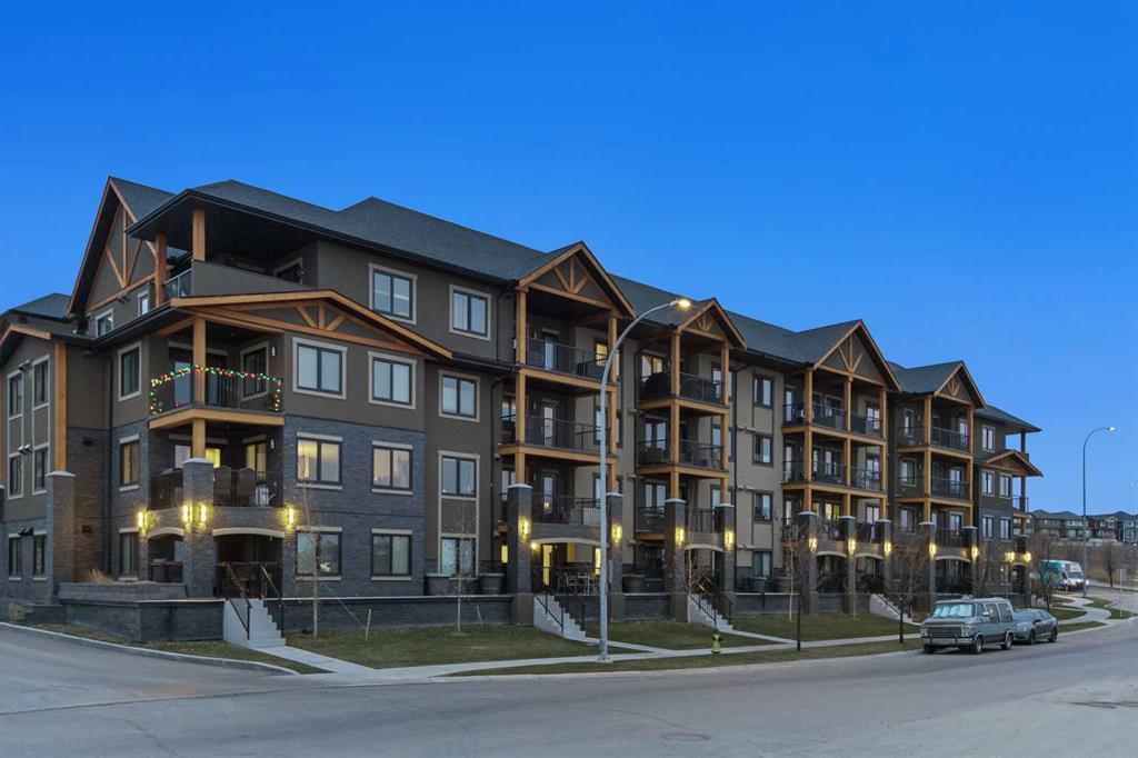 WELCOME to this SPACIOUS + IMMACULATE Condo ground floor unit w/IN-FLOOR HEATING that has 669.90 sq ft + a PATIO of 16'8 x 8' 6 ft!!! UNIQUE because it also has 2 TITLED PARKING STALLS w/STORAGE CAGES, + an ADDITIONAL 4’ X 6’ STORAGE ROOM (30-year lease) on the 2nd Floor!!! The Pinnacle at Kincora is a METICULOUSLY DESIGNED condo complex by Cove Properties, one of Calgary’s TOP AWARD-WINNING multifamily developers w/PRISTINE REPUTATION for QUALITY CONSTRUCTION. YOUR new HOME is situated in one of the BEST LOCATIONS in Kincora; TUCKED AWAY but within walking distance to SHOPPING + FUTURE PARK DEVELOPMENT across the street!!! We start w/SPACIOUS FOYER, VINYL PLANK FLOORING throughout, 7' 10" KNOCKED DOWN CEILINGS, HUNTER DOUGLAS BLACK OUT BLINDS/SHEERS, + IN-SUITE LAUNDRY. The KITCHEN has ELEGANT LIGHT BROWN CABINETRY, TILED BACKSPLASH, UPGRADED SS APPLIANCES, GORGEOUS QUARTZ COUNTER TOPS, UNDER COUNTER LIGHTING, LARGE OVERSIZED ISLAND w/DRAWERS that has a BREAKFAST BAR area to eat at. The 16’2” X 12’8” LIVING ROOM is GREAT for ENTERTAINING or putting your feet up after a long day. The Patio Door leads out to the NORTH FACING COVERED Patio overlooking a HUGE GREEN SPACE which is ZONED for PARKWAY (No buildings so it stays as a park!). It has a SEPARATE ENTRANCE which is CONVENIENT, also has a GAS LINE for a BBQ. This area is for LOUNGING while ENJOYING LOOKING out at the SUNSETS or having a morning coffee!!! So much PRIVACY as well due to space in between the neighbors w/flower pots, + extra railing. The BEDROOM has a BUILT-IN MURPHY BED which also has plenty of room to use as an OFFICE or DEN. It has the WALK-IN CLOSET w/BUILT-IN CLOSET ORGANIZERS incl/4 SOLID WHITE SHELVING, as well as the 4 pc BATHROOM which incl/GLASS SHOWER DOOR, QUARTZ COUNTERS, TILED BACKSPLASH, + Brown Cabinetry. Inside the Bathroom Cabinet is 4 solid white shelving as well. There is LED LIGHTING throughout. This condo is IMMACULATE!!! ENJOY single level living in this SECURE, MAINTENANCE-FREE EXCLUSIVE 18+ BUILDING!!! This 1 Bedroom Unit is one of 6 in this area, + it has the most sq footage so VALUE for the $$$!!! So MUCH STORAGE!!! The coat closet too. This unit is a block away from AMENITIES, RESTAURANTS, PROFESSIONAL OFFICES, + MORE. A QUICK drive to Stoney trail + Deerfoot Trail as an easy commute. On top of that KINCORA has a NEIGHBORLY COMMUNITY with the Parade of Garage Sales, Colors Festival-Holi, City of Calgary-Neighbor Day, 14th Annual Stampede Breakfast, Food Trucks from June-October + Winter Festivals!!! *Please note: Please keep friendly cat inside, do not let out; thank you.*