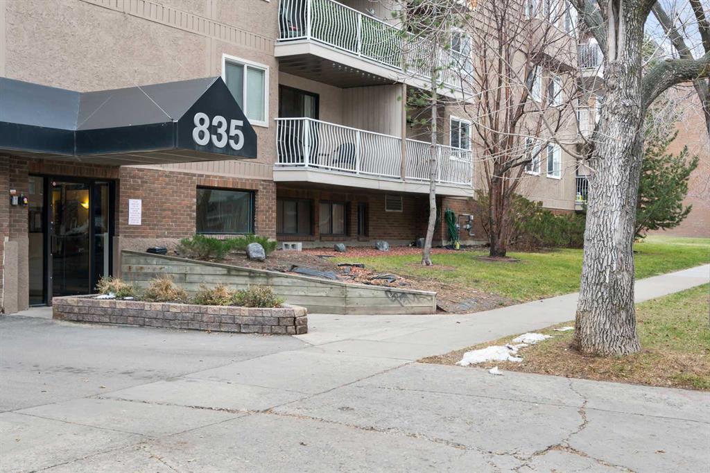 ***Fantastic starter home/investment opportunity in the vibrant and highly desirable inner-city neighborhood of Lower Mount Royal!!*** Although this impeccably clean one bedroom condo unit says # 102 on the door...it is actually located facing 19th Avenue with its tree lined streetscape ON THE SECOND FLOOR (not a ground floor unit)! Inside you will be pleased to find a well laid-out floor plan with quality wide-plank smoked maple HARDWOOD, a galley-style kitchen with white cabinetry and breakfast bar, an additional generous size dining area, a 4 piece bathroom...plus a very spacious primary bedroom with your very own wall mounted Epson HIGH DEFINITION home cinema projector that will project your favorite movies, programs, sporting events , etc. onto the living room wall with perfect clarity! All appliances are included in sale price...and having in suite washer/dryer/storage is a definite bonus. The balcony is sure to please and is quite large. Additional benefits to this condo include one assigned (covered, enclosed, secure and electrified) PARKING STALL (Letter "E") and an additional assigned storage locker (#102) and bike storage room on main floor as well. Very reasonable condo fees that include heat/water/sewer add to the excellent affordability. All this can be yours...and it's conveniently located only a short walking distance to Calgary's lively and eclectic 17th Avenue with an abundance of shops, restaurants, pubs and amenities. Come take a look...you'll be happy you did!!