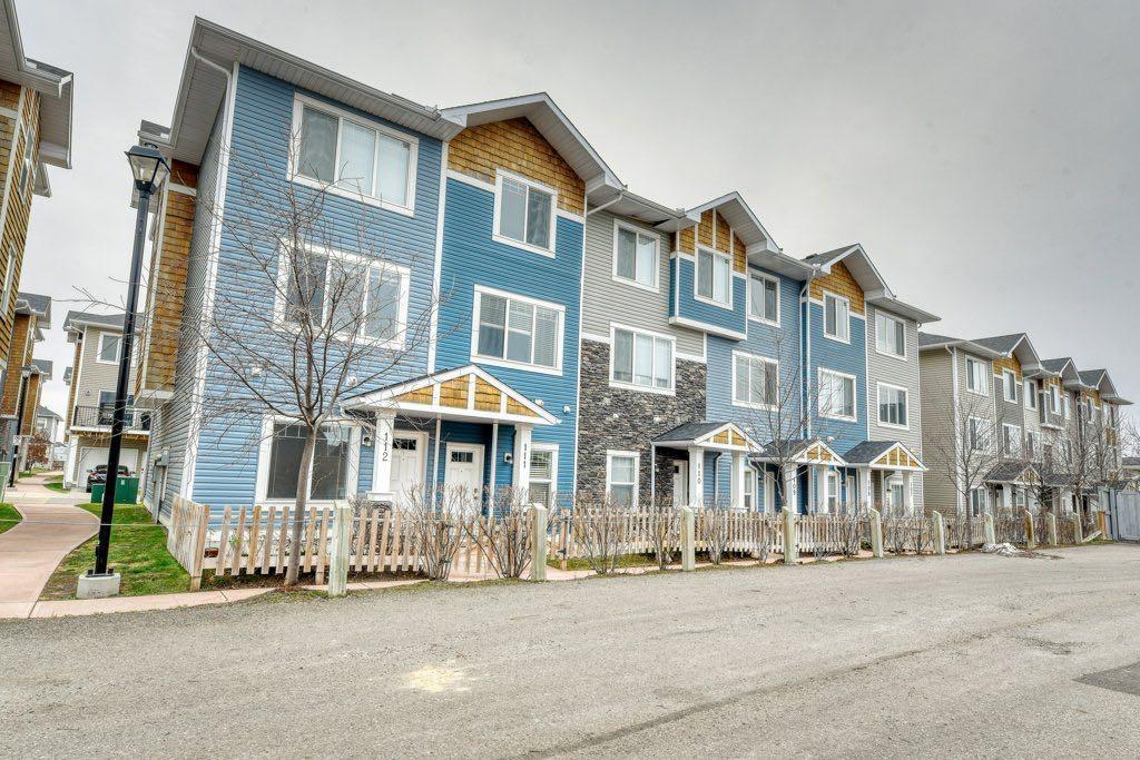 Affordable home ownership! The perfect blend of affordability and modern living in this exquisite 3-level townhome. Embrace the convenience of a carefree condo lifestyle while enjoying contemporary style and an open floor plan. Functional ground level has flex room for an office, den, gym, …, two piece bath and single garage (with room for another car on the driveway). The upper level boasts soaring ceilings, laminate flooring, and an abundance of natural light flooding into the living room, dining room, and chic modern kitchen. The kitchen is designed with a large breakfast bar and opens to your private balcony. The third level is complete with two generously sized bedrooms, conveniently located laundry facilities and a full bathroom, offering both comfort and practicality. Walking distance to schools, shopping, grocery, playground, green space, public transportation and everything else that matters. Just 10 minutes drive to shopping paradise at CrossIron Mills and more. Take advantage of this incredible opportunity! Explore the home through our 3D tour and pictures. Then, schedule a personal viewing to experience the appeal of this modern condo lifestyle firsthand.