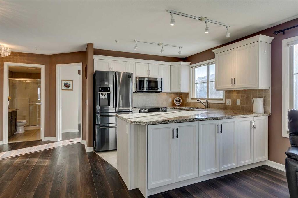 Nestled within the prestigious Crystal Shores community, your new sanctuary awaits—a testament to opulence, convenience, and the art of refined living. This luxurious main-floor condominium, boasting 2 bedrooms, a den, and 2 bathrooms, stands as a pinnacle of residential excellence. It is a corner unit that bathes in natural light and offers an array of enhancements that redefine the concept of comfort and style. Year-round, the serene lake becomes your private oasis, a canvas for experiences that linger in memory. In summer, golden rays illuminate the exquisite beach, inviting refreshing swims in crystalline waters. As winter unfolds, the frozen lake becomes your playground, inviting indelible memories with cherished companions. The open floor plan of this residence is a masterpiece, seamlessly fusing functionality with aesthetics. Be greeted by intentional upgrades that include opulent granite countertops, elegant tile flooring, stainless steel appliances, and enchanting under-cabinet lighting. A living room beckons you to unwind, and beyond, a vast wrap-around patio, complete with a barbecue hookup, provides an idyllic outdoor retreat. Spanning almost 1000 square feet, this condo offers ample space for personalization, allowing you to craft a haven uniquely your own. The primary suite is a sanctuary unto itself, complete with a generous walkthrough closet featuring built-in storage solutions and an ensuite bathroom adorned with modern luxury. Privacy reigns supreme as both bedrooms are thoughtfully separated. Convenience becomes a way of life with in-unit laundry and storage room, ensuring your needs are met seamlessly. Your vehicle finds shelter in the titled, underground parking, complete with a storage locker and the convenience of a car wash facility. The condominium community is a testament to luxury living, featuring an impressive amenities building that offers a rich tapestry of leisure and relaxation options. Challenge friends to billiards in the games room, rejuvenate your spirit in the soothing steam room or relax in the hot tub. Your well-being is nurtured with a fully-equipped resident gym. Foster connections with friends and neighbours in the communal space, where gatherings and events come to life. This enclave offers swift access to Calgary, a mere 15 minutes from the city limits. Convenience reigns supreme as you can walk to nearby parks, playgrounds, and the golf course, all within easy reach. This condo transcends the ordinary; it embodies a coveted lifestyle. Boasting exclusive lake privileges, an impressive array of upscale amenities, and a meticulously upgraded unit, this condominium caters to a diverse range of discerning individuals, downsizers, and astute investors alike. Elevate your life by scheduling a viewing today and embark on your journey to embrace the dream that Crystal Shores represents. Your new home awaits, where excellence knows no bounds!