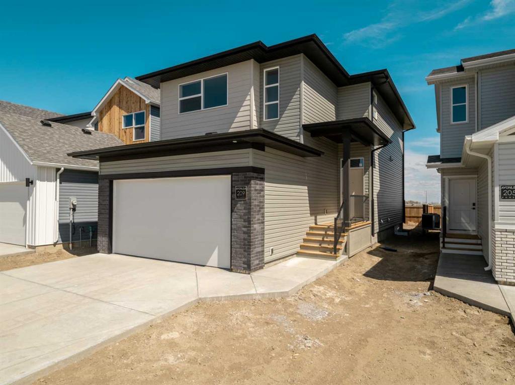 The "Isla" by Avonlea Homes is the perfect family home. This particular home has an OVER-SIZED 24 X 24 GARAGE. The main level hosts a notched out dining nook, eating bar on the kitchen island, walk in pantry. Large windows and tall ceilings make the main floor feel very bright and open. Also notice the new look of the flat painted ceilings.Upstairs resides the 3 bedrooms with the master including an en-suite and walk in closet. The ensuite has a large 5 foot walk-in shower and His/Her sinks.Great Bonus room area for the family to enjoy. Bonus room is in the middle of the upstairs giving privacy to the master retreat from the kids bedrooms.Convenience of laundry is also upstairs. The basement is open for future family room, bedroom and another full bath. This home is located close to the 73 ACRE Legacy Park, Playground, shopping and schools. NHW. Home is virtually staged. Check out the virtual tour of the Blackwolf Show Home