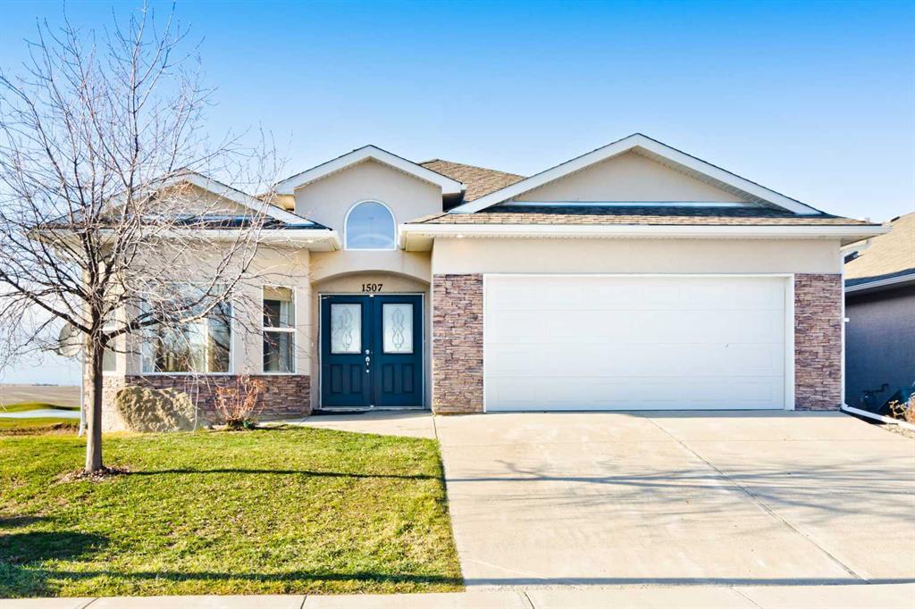 This property boasts a truly spectacular view and is designed with accessibility in mind, featuring a wheelchair-accessible walkout bungalow. Nestled against a picturesque golf course backdrop, the home offers stunning mountain views. The interior is characterized by vaulted ceilings and an open floor plan seamlessly connecting the kitchen, dining area, and living room. The kitchen is well-appointed with ample storage, including a pantry and under-cabinet lighting. A massive back deck, accessible from the dining room, enhances the enjoyment of the outdoors. Cozy up to the gas fireplace in the living space. The primary bedroom is a retreat, featuring a luxurious 5-piece ensuite with a double vanity, soaker tub, walk-in shower, and a spacious walk-in closet. The second bedroom is bathed in natural light from large windows and is accompanied by a 4-piece bathroom. Convenience is key, as the second bathroom is connected to the laundry room. The partially finished walkout basement awaits your personal touch, equipped with rough-ins for in-floor heating and plumbing. Additional features include an underground sprinkler system, central vacuum hook-up, and an oversized double attached garage, providing the perfect finishing touches to this exceptional property.