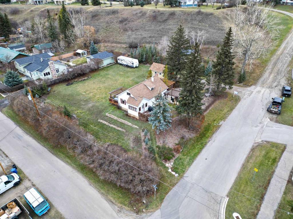 COME VIEW THE 3D TOUR NOW! Click on the Multimedia/Virtual Tour button! You will absolutely adore this secluded haven tucked in against a hill! With it sitting on a 0.6 acre lot, it's like getting the best of acreage living whilst being just steps away from all the amenities of downtown Okotoks! This super cute 1.5 storey home benefits from all the services (water, sewer, power) that you would expect of any regular home in town but in its own park-like setting! Mature lot with masses of evergreens and bushes, beautifully landscaped throughout and with seemingly endless space for the kids to play outside. You'll appreciate the oversized single detached garage for your car that also offers lots of storage space. Got an RV/trailer? You'll easily accommodate that here! Several vehicles in your household? No problem…you will comfortably park them all on this lot! The home benefits from a pergola covered patio and small deck on the East side of the home and a large pergola covered deck and a firepit area on the West side, which both look out over your massive yard! There's even a secluded area custom designed for hosting a future hot tub! Step inside and you will love the spacious and updated kitchen, with its plentiful supply of cabinets and drawers and its stainless steel appliances that were all purchased in recent years. The adjacent dining area is huge and is flooded with light from the triple aspect windows. The cozy living room offers a sliding glass door out to the deck. The primary bedroom is large and features a closet with an upgraded organizer system and both it and the adjacent informal second bedroom have windows overlooking the private yard. A 3 pc bathroom completes this level. Upstairs, you will find a delightful hobby/reading room that leads to a wonderful family room where I invite you to take a seat and imagine yourselves relaxing here. I guarantee you will not want to leave! Beyond the family room is the den. The basement offers a stunning 4 pc bathroom added by the current owners and an adjacent spacious laundry area. There is plenty of scope to add at least one more bedroom here whilst still leaving plenty of storage space. Other recent years additions have been a high efficiency furnace, hot water heater, water softener, new shingles, washer, dryer, some new lighting and more! Outstanding value here. Book a showing and MAKE IT YOURS!