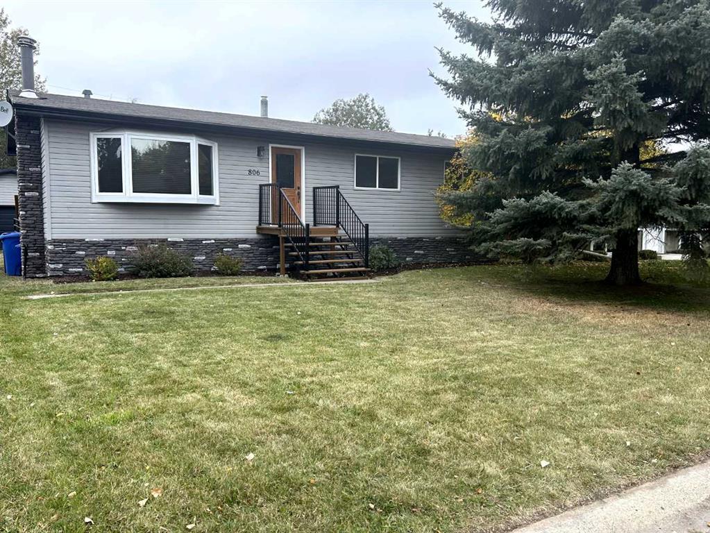 “Modern farmhouse” describes this tastefully upgraded raised bungalow found in the coveted north end of Sundre. While featuring lovely curb appeal it also has a generous fully landscaped and fenced back yard with a nice mix of trees and shrubs which is ready for the children and four-leggeds in your family. Perfect for a young family, first time home buyer or someone ready to downsize! Numerous upgrades over the years include a new kitchen, laundry/mud room and bathroom (with soaker tub) on the main floor, upgraded appliances, new windows throughout, new furnace, roof and siding and very nice wrought iron deck railings. The basement features a wide open huge family room, 2 more bedrooms, a 3 piece bathroom and generous storage areas. There is lots of room for parking, a large west facing deck and an oversized 26X24 garage in the backyard. This home is freshly painted and unoccupied which makes it “move in ready”. Conveniently located close to the hospital, schools, Royal Purple Park, Snake Hill Recreational Area and walking/biking trails. This home is ready for new owners and is priced to sell so book your showing today!