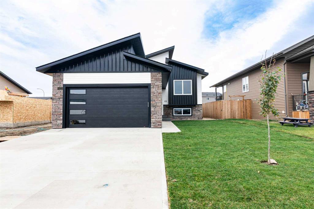 INCREDIBLE FINISHES in this WOLOWSKI SHOWHOME! This home is brand new with 10 year PROGRESSIVE NEW HOME WARRANTY! Welcoming award winning floorplan with OPEN CONCEPT. Vaulted ceilings finished in white wash pine, custom choice by the builder, and recessed LED lighting. The main level features three bedrooms, two baths. Kitchen, leads to a good size patio and beautiful SOUTH EXPOSURE back yard. kitchen has a wall pantry and eat up QUARTZ peninsula., a good size dining and very large living room located at the front. The master ensuite has walk in closet and a 4 piece ensuite. There is a full four piece bathroom completed in the basement. Room to add 2 more bedrooms and a large family room. Builder prides himself on his ICF foundations and attention to detail. Pride of workmanship throughout. Sod is included in the front, and a DOG RUN on the west side, as well you have back alley parking or RV parking. Flooring is a warm LUXURY VINYL PLANK, and wall color's are trendy and NEUTRAL. Kitchen has abundance of WHITE CABINETS and counterspace. This is an upcoming neighborhood in the south east side of Lacombe., across the road from a POND and walking trails. Move your family in before CHRISTMAS! A pleasure to show