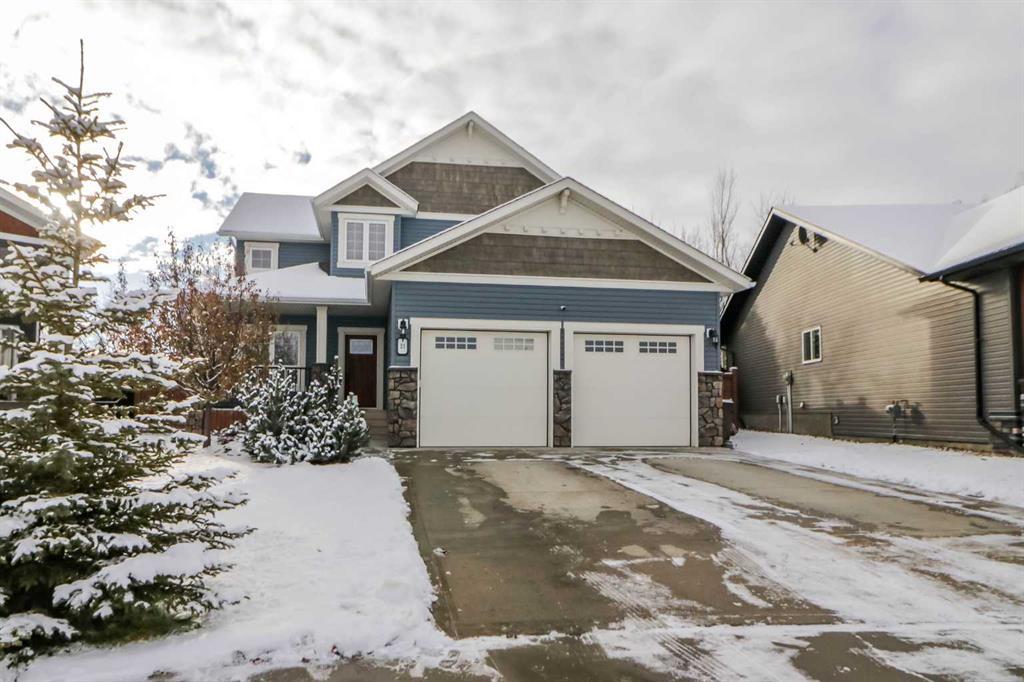Welcome to this luxurious two-story home that boasts 4 bedrooms plus den and office computer room and 3 ½ elegant baths. Nestled in a cul-de-sac against a serene green space, 21 Regal Court offers a harmonious blend of opulence and nature. Excellent for the one working from home, the office at the front entrance is ideal complete with built in cabinets. The chef in the family will enjoy the grand island in the kitchen which is quartz and the spacious walk in pantry covered by a barn door, and the floor to ceiling cabinets and stainless steel appliances. The rest of the family will appreciate the roomy dining area and the open living room with the stone faced gas fireplace. Step from the dining room out onto the deck and the private back yard steps from the walking paths of Sylvan. Upstairs are 3 bedrooms including the large primary bedroom with an amazing walk in closet and the distinguished ensuite with double sinks and marble countertops. Downstairs is fully developed with a great family room area with in floor heat, another bedroom, and a beautiful 4 piece bathroom. The double attached garage has roughed in slab heat. A new water tank and water softener was put in in 2020. Close to schools, shopping and parks, this open concept layout, coupled with high-end finishes, creates a haven of comfort and style, making it the epitome of sophisticated living.