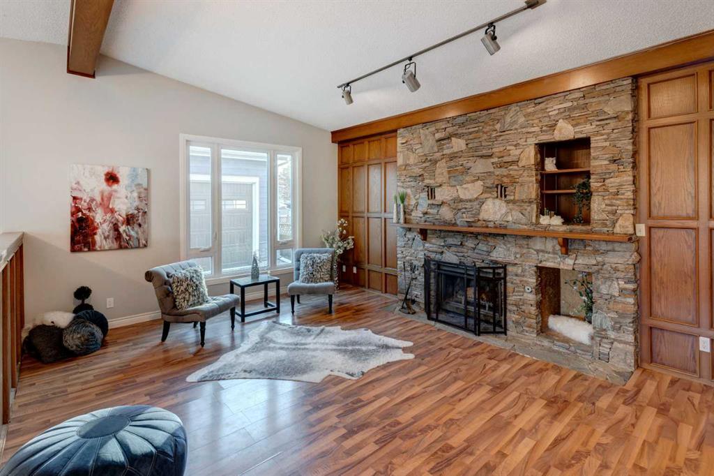 Unique OPPORTUNITY to own a 4 bedroom, 2.5 bath sq ft bungalow in Old Town Airdrie w/over 2500 SQ FT OF LIVING SPACE DEVELOPED! Located on a QUIET street & a MASSIVE lot w/ SOUTH-facing back yard. What makes this gorgeous property even more appealing & special is the nearly 1000 SQ FOOT HEATED SHOP! This shop boasts 220 power, HARDIE BOARD SIDING, roughed in in floor heat, 2 OVERHEAD DOORS, DIRECT DRIVE GARAGE DOOR OPENER ON THE DOUBLE DOOR, negotiable lift & is a unicorn within the city limits. This DREAM SPACE gives you acreage style storage & workspace in the city & within walking distance (900 meters approximately) to 3 schools. Tiled foyer opens to a BRIGHT living room (perfect for home office space). The UPDATED kitchen has plenty of tall cabinetry, tile backsplash, GRANITE counters, LARGE walk-in pantry, double FULL SIZE WALL OVENS, SS UPGRADED HOOD FAN & HEATED TILE FLOORS. The kitchen is completely open to an amazing DINING SPACE highlighted by CATHEDRAL ceilings. This area overlooks the family room w/ gorgeous stone WOODBURNING fireplace & laminate floors. Other upgrades in this area of the home include NEWER TRIPLE PANE WINDOWS & IN FLOOR HEAT. A 2 pc main bath & full 4 pc CABIN STYLE bath w/ dual flush toilet service the 3 main floor bedrooms inc the GENEROUS primary bedroom. The half bath also serves as an ensuite bath to this room. Also on the main floor is a massive MUDROOM with access to your SINGLE ATTACHED GARAGE (with this garage you have nearly 1200 sq ft of GARAGE SPACE!!!) Downstairs find an EXTENSIVE rec room w/newer carpets & pot lights. There is also a 4th bedroom as well as a 3 pc ensuite style bath on this floor (window size may not meet today's egress standards for a basement bedroom & basement was developed before the current owners owned the home so it is unknown if this was permitted as a bedroom at the time of development). TONS OF STORAGE in 2 separate crawl space areas. Other upgrades inc. built in vacuum system, forced air furnace (original but well maintained & available to supplement the infloor heat) & NEWER HOT WATER TANK. Even with the MASSIVE SHOP you will still enjoy a good sized SOUTH backyard w/large deck & an additional parking spot. Do not miss this incredibly amazing property.