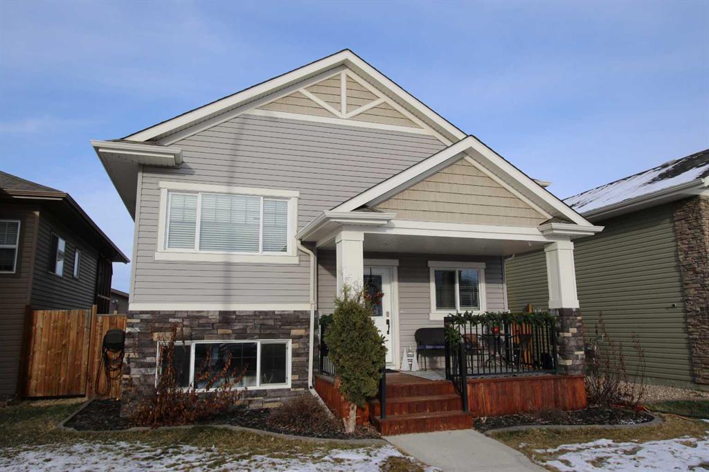 Welcome to your charming starter home in Penhold, a cozy community with a short commute to Red Deer. Whether you're starting a new chapter or growing your family, this residence provides a warm and inviting space to call home. This home features 5 bedrooms and 3 baths, providing ample space for a growing family or accommodating guests. You are welcomed by the front veranda, perfect for enjoying your morning coffee, and upon entering, you're greeted by an open-concept design that seamlessly connects the living, dining, and kitchen areas. The neutral tones throughout the home create a soothing and versatile backdrop, allowing you to add your personal touch effortlessly. In the heart of the home is the kitchen, adorned with rich dark wood cabinets and stainless appliances that not only provide ample storage but also add a touch of elegance. The breakfast peninsula is a convenient spot for quick meals or a gathering point for family and friends. Natural light floods the space through oversized windows, giving the home an airy and bright atmosphere. The master bedroom is a retreat of its own, boasting a large ensuite with a spacious shower. The basement showcasing a feature wall with electric fireplace plus 2 additional good size bedrooms and a 3 piece bath. Situated on a close, the location ensures a quieter environment and a sense of community. The yard is fully fenced with the convenience of a gravel parking pad. This property offers a perfect blend of comfort and convenience.