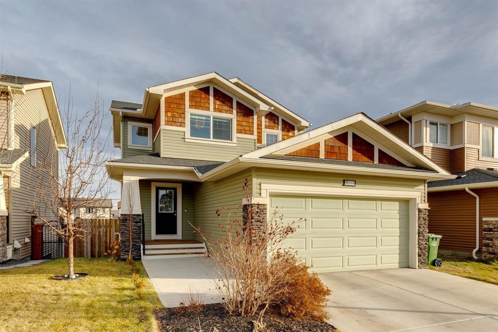Original Owners present this immaculate, stylishly upgraded home in the family-oriented community of Bayside, which is sure to impress. The open and bright interior boasts gleaming tile floors, an abundance of natural light & a modern yet comfortable design. The living room promotes relaxation with clear sightlines that encourage seamless conversations with family and guests. Any chef will feel inspired in the stunning BRIGHT WHITE kitchen featuring granite countertops, all major appliances, a walk-through pantry for extra storage, and a massive breakfast bar island for everyone to gather around. Encased in windows the dining room is bright and sunny with peaceful backyard views. Access to your massive balcony deck with steps leading to your very own oasis. Laundry and a convenient powder room complete this level nicely. Feel spoiled daily in the calming primary retreat on the upper level with a walk-in closet and a private full en suite. 2 additional bedrooms on this level are both spacious and share the 4-piece family bathroom. Large unspoiled basement with a rec space, roughed-in-plumbing and awaiting your finishing touches. Soak up the sun, host BBQ's, or simply unwind on the large deck, landscaped and flat backyard with lots of grassy play space for kids that is privately fenced and no neighbors behind you! Bayside is located in Southwest Airdrie, making the drive into Calgary easier than ever. The neighborhood also hosts all ages of schools, parks, canal pathways and is mere minutes to every amenity. Big amenities with a small-town commute come together in this exceptional home full of upgrades! Book your private viewing today before this one gets sold!