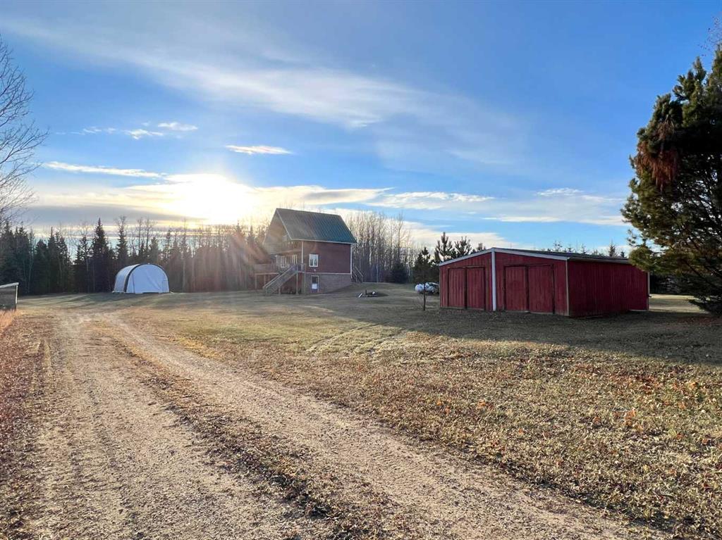 Well maintained and ready for a quick possession. 43.02 acres with direct access to over 640 acres of crown land in your back yard. Home built in 2007 with 4 bedrooms and 3 bathrooms. Main level has an open kitchen and living room, featuring a custom masonry wood stove with built-in pizza/bread oven. Upper level with 2 bedrooms and bathroom. Primary bedroom has a private deck off the east side with a view of the morning sun. Walk-out basement is partially finished with a family room, bedroom and bathroom. 48 ft x 23 ft tarp Quonset with concrete floor, 23 ft x 24 ft garage with dirt floor. Second yard site with well and septic (older home has been removed). Excellent highway exposure for a home based business.