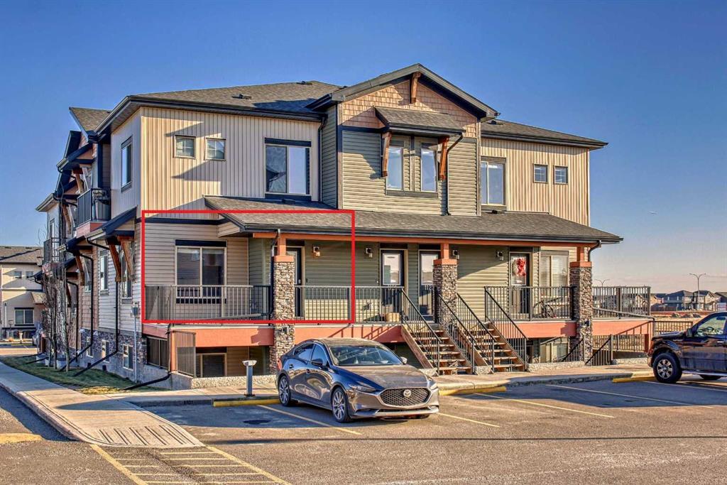 Fabulous corner end unit in quiet part of this lovely Airdrie complex. This stacked townhome is bright and sunny and has a large west-facing balcony. This building was one of the last to be built in the complex and was constructed in 2018. An open floor plan with high ceilings gives this home a very spacious feel. Exceptionally well maintained and gently lived in makes this a very desirable home. 2 bedrooms and 2 full bathrooms add to the appeal of this condo. Primary bedroom is a good size and has a large 3 piece ensuite and terrific walk-in closet. 2nd bedroom is also roomy and across from the 4 piece bathroom and laundry. A great kitchen with quartz counters, full height cabinets, a corner pantry and large island with seating. Adjacent to the kitchen is the dining area which leads to the living room that is flooded with light. Vinyl plank flooring throughout for easy maintenance Reasonable condo fees that include all but electricity makes this an affordable option! Great storage and parking spot right out front. The grounds of the complex are very nice and your pets are welcome! Don't miss the chance to grab this one!