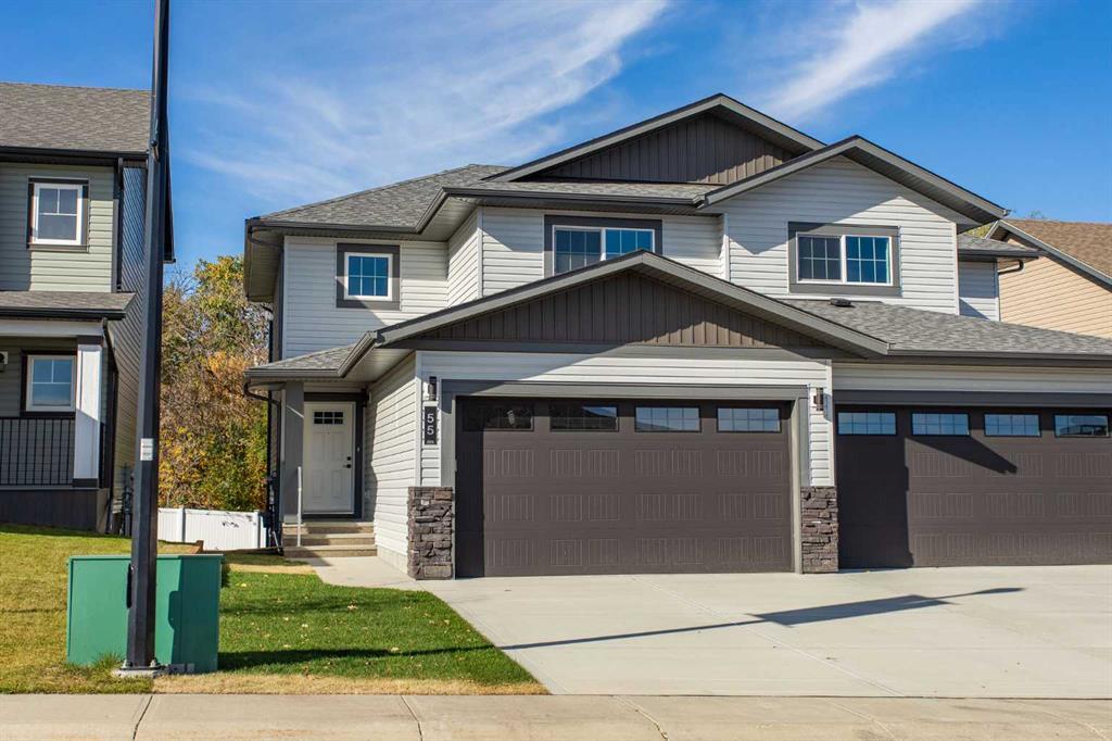 Welcome to 55 Cameron close, this brand new beautiful half duplex has 3 bedrooms and 2.5 bathrooms. Enjoy having a mudroom off of your double attached garage as well as a spacious and open concept main floor. The main floor has your generous sized kitchen, eating bar, stainless steel appliances, half bathroom and access to your south west facing rear deck. The upper floor has one bathroom and two good size bedrooms, as well as the primary bedroom with an en suite and a great size walk-in closet. The basement is undeveloped for all of your future plans!