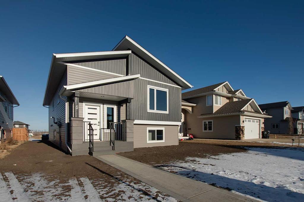 Brand New sophisticated bi-level in a prime location, close to a scenic park and peaceful walking trails. Upon entering you’re greeted with gorgeous luxury vinyl plank flooring that gracefully spans the expansive living room, dining area, kitchen, and hallway, creating a harmonious and welcoming atmosphere throughout. A lovely textured and neutral-toned carpet in the 3 bedrooms on the main level. Say goodbye to trips down the stairs for laundry-this home offers the convenience of main-floor laundry! The heart of this home, the kitchen, is a haven for culinary enthusiasts, boasting stainless steel appliances and beautiful cabinets embellished with crown molding, complemented by sleek quartz countertops, and a modern tile backsplash. The breakfast bar is an ideal space for morning gatherings or casual dining. Step through the kitchen to discover an 11’6” X 12’6” treated wood deck where you can enjoy the summer evenings with plenty of room for patio furniture to extend your living space in the warmer months. The basement presents boundless opportunities for customization inviting you to personalize this space to your unique preferences. Rough-in for in-floor heat and a 3rd bathroom. High-efficient furnace and hot water tank plus triple pane windows on the main level. This home offers immediate possession and a New Home Warranty. GST is included in the price with the rebate to builder.