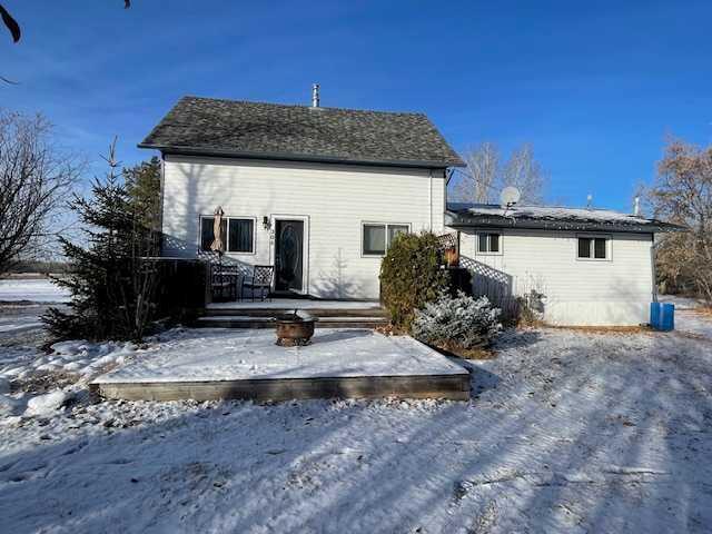 In the charming Hamlet of Metiskow, this 1348sq.ft. 1 1/2 storey home sits on mature spacious corner lot! Over time, the property has been enhanced with a primary bedroom addition, updated flooring and bathrooms while preserving its traditional appeal complemented by contemporary details, including striking extra-wide baseboards. On the main level you find a well-appointed kitchen with ample cabinets, adjoining dining area, spacious living room , grand primary bedroom, 4pc bath and mudroom. Let's head upstairs where you will find two bedrooms that offer great flexibility, with one presenting the potential for shared use, along with a sizable 4pc bathroom. This level is adorned with beautifully painted original hardwood flooring and wainscoting, enhancing the property's character. The basement provides ample space for storage and laundry facilities. Outdoors, the expansive front deck is an ideal setting for enjoying morning coffee or relaxation among family and friends, while the large yard, surrounded by mature trees, provides a wonderful play area for children. Added convenience comes in the form of a shed perfect for storing garden & lawn tools and equipment. If you seek a modern lifestyle within a traditionally charming home, we invite you to explore this unique property!