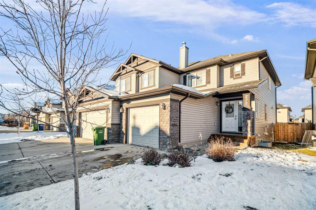 This gorgeous home is exactly what you're looking for with NO condo fees. With every detail finished, all you need to do is move in! You'll love the oversized single attached GARAGE that keeps the vehicle warm in winter and the bonus of a paved driveway for guests. Inside, this home has been tastefully designed with quality finishings. The kitchen features a large island for meal prepping and entertaining. Modern stainless steel appliances, including a French door fridge, a clean backsplash, and sleek granite countertops add a timeless statement. The open dining room will accommodate extended family visits over the holidays and a back door leads to the spacious FENCED backyard. The living room is a space bright and cheerful space, with plenty of room for cozy nights. Upstairs, the primary suite can easily fit a king-sized bed and features a walk-in closet and a 4 piece ensuite. Two additional bedrooms and a 4 piece bath complete this level. The basement is FULLY FINISHED with a large recreation room that can serve a variety of functions and the 2 piece bath is a great final touch. Additionally, laundry can be found on this level and extra storage. With a DECK at the back plus green space, you'll love entertaining with room for the kids to play! Great location, close to major routes, Nose Creek Elementary School, and many walking paths.
