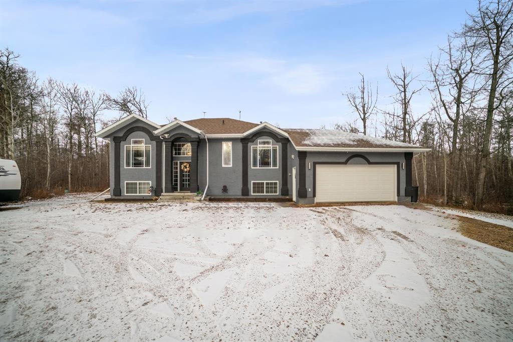 This is the property you've been looking for! Nestled in the beautiful community of Royal Glenn on a 2.57 acre private/treed acreage this bi-level home has 4 bedrooms, 3 bathrooms and an impressive 1305 Sq ft. Enter the home thru the front entrance, upstairs is a stunning, bright living room with cozy gas fireplace. The kitchen is completely renovated and has a huge island, granite countertops, corner pantry, and a dining space that leads to the deck. Enjoy year round living inside & out thru deck doors and the deck and firepit area with pergola for enjoying gatherings with family and friends! The main floor has 3 bedrooms including primary bedroom with 3pc ensuite, and a 4pc bath. Downstairs is a huge rec room with plenty of room for a pool table plus family room space and a cozy free standing wood stove. Theres a 4th bedroom(or office), laundry room and attached garage access thru the basement. The 22x22 heated garage is well set up for the hobbiest, car enthusiast or as additional storage and parking. The neighborhood is close to many amenities, and yet with no neighbors within view it feels as if you're in a private treed paradise.