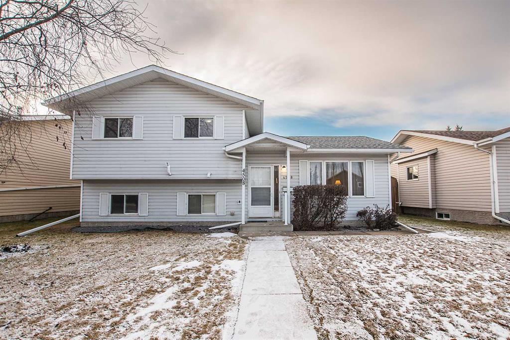 Sweet little 3 level split in the Palo area of Sylvan Lake. Located on a great street facing onto Ryders Ridge this home has such good bones. Re sided with new shingles in 2008, the furnace, hot water heater and sump pump were replaced in 2021, and all poly-b pipe was replaced with pex in November of 2023. This home has 4 bedrooms and 2 1/2 baths with all appliances included, and has a lovely gas fireplace in the 3rd level family room. Large crawlspace area for oodles of storage. True double detached garage in the back and has a bonus of RV parking out back. Worth a look.