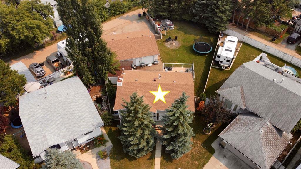 HUGE PIE LOT AND MASSIVE 30 x 40 TRIPLE CAR HEATED GARAGE! Perfect family home tucked away in a quiet close and easy walking distance to the all new Multi-Plex Arena, Abbey Centre Pool and more. Garden doors off the kitchen dining area to a large deck overlooking the backyard. Lots of privacy here with towering Spruce trees as your backdrop. Three bedrooms up and one down. Wood stove in family room. Fresh new flooring updates. 3pc bath in basement. There is another smaller single garage/storage building out back.