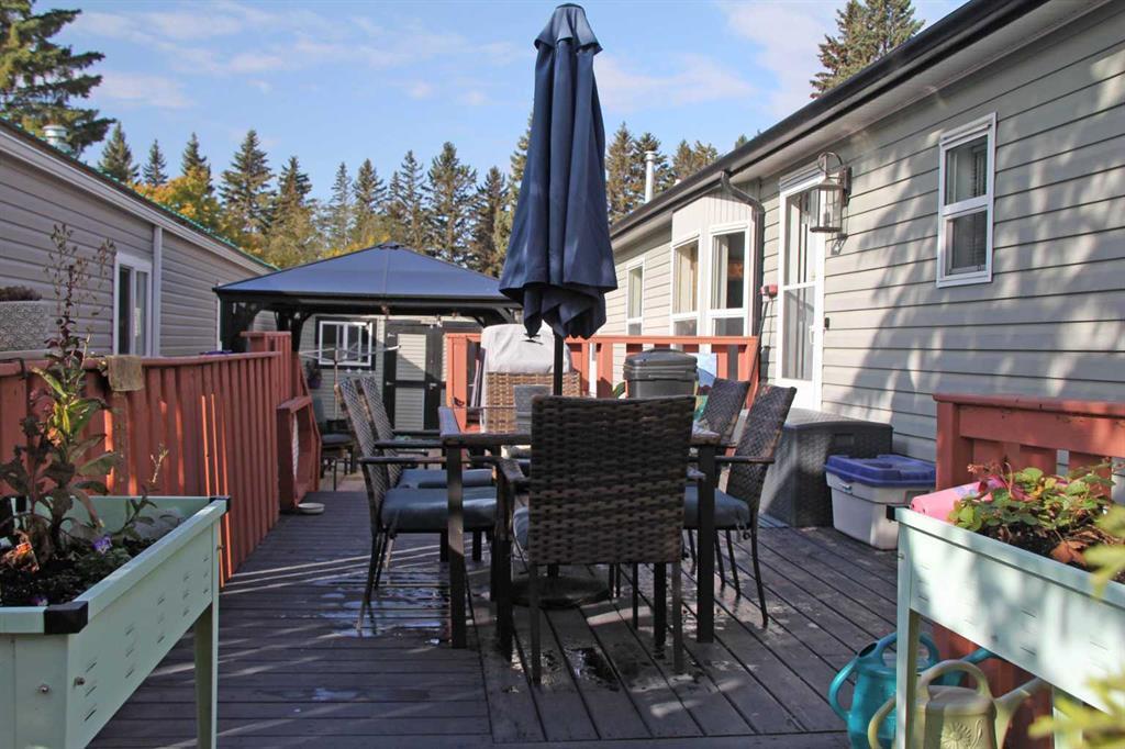 Welcome to this spacious 1520 square foot Modular home with 3 bedrooms and 2 full baths built solid on steel I-beams. Walk into the open concept living room, dining room and kitchen with a vaulted ceiling including a sky light that allows lots of natural light. This home is in wonderful condition and includes all new flooring, paint, Central Air, a reverse osmosis water purifying system, a water softener, new deck and gazebo. New metal insulated skirting was installed around the entire home with sealed bladder and crawl space heat, weeping tile, sump and ventilation making this a dry warm area resulting in warm floors, no ground odours and near zero risk of freezing pipes. Yard is low maintenance with a doggy fence and very little grass plus a nice sized shed to store bikes and such. Enjoy this very comfortable clean family home with front driveway off of preferred 44th street. Lot rental is a reasonable $515 per month and includes water, sewer and garbage pickup. Spruceline Park is professionally managed by SunReal Property Management.