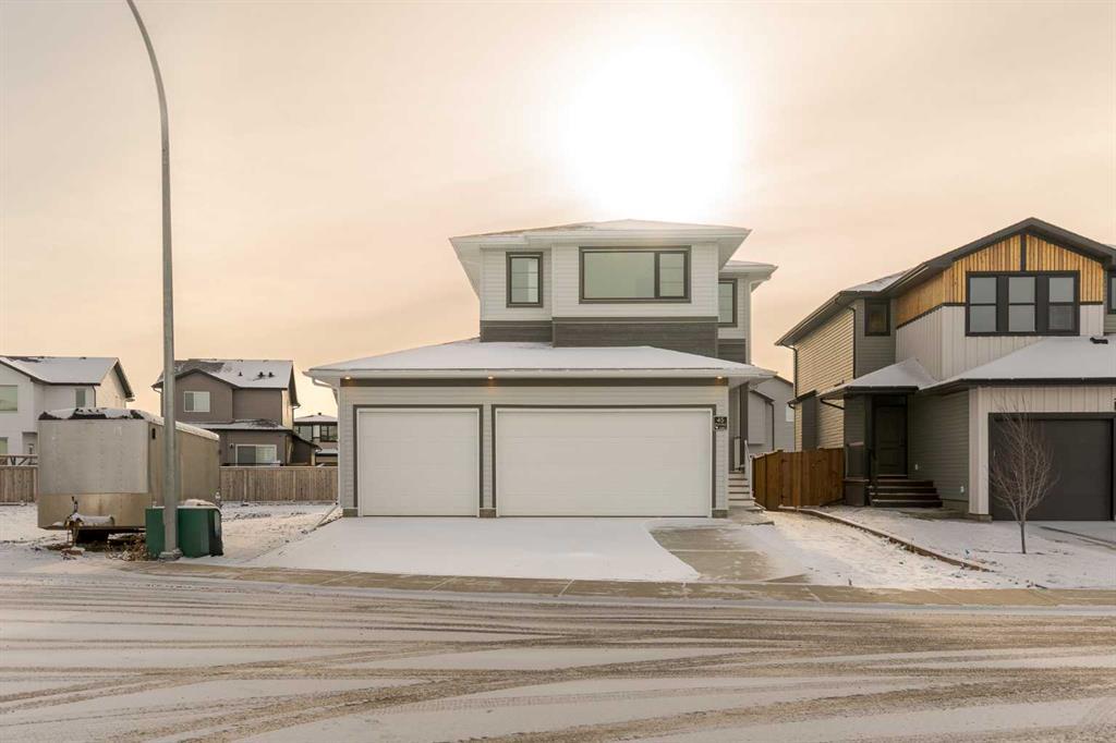 Welcome to the pinnacle of modern living in one of Lethbridge's fastest-growing developments, Country Meadows. Nestled on a serene cul-de-sac, this brand-new 2-storey home, a dazzling example of the Kinley model by Stranville Living Master Builder, boasts a generous 2000 square feet and a triple car garage. As you approach, the triple car garage commands attention, providing not only ample parking space but also a touch of luxury for car enthusiasts. The quiet cul-de-sac setting ensures a peaceful and secure environment for you and your family. Step through the front entrance, and you'll be greeted by a private office space—a perfect haven for productivity or a quiet retreat for work-from-home days. The main floor unfolds into an expansive dining and living room area, adorned with an electric fireplace, creating a cozy atmosphere for family gatherings and entertaining guests. The heart of this home is undoubtedly the large U-shaped kitchen, a chef's delight with abundant counter space and storage. Stranville Living's unique kitchen selections, including the Fisher and Paykel hidden fridge, Blomberg dishwasher, built-in oven, microwave, and sleek induction cooktop, elevate both style and functionality. The woodgrain lower cabinetry paired with the white uppers draws the eye upward, enhancing the already impressive tall ceilings. Venture to the second level, where functionality meets luxury. A full-size laundry room adds convenience, while a spacious bonus room beckons to be transformed into a theater room or kids' play area. Three large bedrooms grace this level, two of which boast walk-in closets for added storage and organization. The primary bedroom is a true retreat, featuring a gorgeous ensuite that includes dual vanities, a standalone soaker tub, a walk-in shower, a private water closet, and a walk-in closet so spacious it could double as a boutique. While the basement remains undeveloped, it presents a blank canvas for you to imprint your personal touch. Customize this space to suit your lifestyle, whether it be an additional living area, a home gym, or a playroom for the little ones. Country Meadows beckons with its promise of a thriving community and easy access to amenities. Don't miss the chance to make this Kinley model home your own—a sanctuary of comfort and style in the heart of Lethbridge's flourishing landscape.