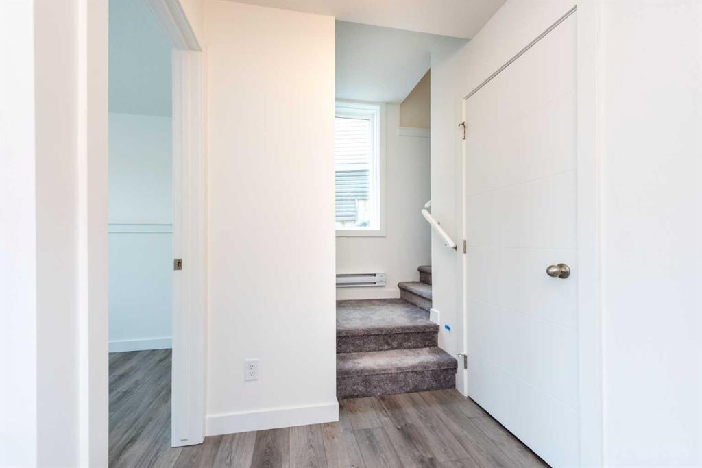 Welcome to a newly built new home in the highly desirable community of Spring bank Hill only steps from Aspen Landing. This beautiful, brand-new townhouse offers the perfect blend of comfort and convenience. Offering 2Bedroom + 1Bath with a titled parking stall directly in front of the unit. The open-concept bungalow-style stacked townhouse with a private west-facing patio. It is designed with a private porch and patio, 9' ceilings, double pane glazing windows, and luxury vinyl plank flooring with cork underlay throughout the kitchen, living, dining area, bathroom. The kitchen is equipped with upgraded finishings, including sleek quartz countertops and a stylish backsplash, shaker cabinets with modern handles, a high-quality sink, elegant lighting fixtures, and thoughtfully designed door handles. Your kitchen also features a pantry for all your storage needs. Rest assured, this property comes with the added peace of mind of a builder warranty and Alberta New Home Warranty. Throughout the unit, you'll appreciate the durable and easy-to-maintain vinyl plank flooring, except on the stairs. This fantastic unit is in a complex just across the street from Aspen Landing, giving you easy access to the vibrant amenities and shopping options. Additionally, you'll find convenient access to 85th St SW and 17 Ave SW, as well as the local transit systems, making it a breeze to explore the area. Don't miss the opportunity to make this your new home.