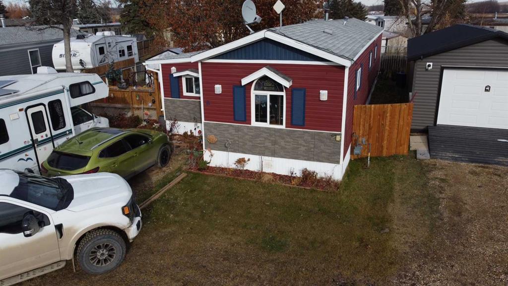 BEAUTIFUL Park like setting home in the heart of Joffre, with very low lot rental fees. Welcome to this beautiful 2 bedroom and 2 bath single wide mobile home. Perfectly sized for all you entertaining wants and needs. This spectacular home contains a large open concept living room and kitchen with plenty of upgrades such as an enormous window in the living room that brings in abundant natural sunlight that brightens this home and nice durable flooring through out. The kitchen is nicely sized for all of your cooking, entertaining and cupboard size needs. 2 bedrooms and 2 bathrooms are incorporated in your new home, you will enjoy with lots of space. Want even more? Here it is! 2 extra bonus rooms are at the front and at the back of your home. You will have no problem finding extra space for whatever needs you need met. Outside there are 2 covered decks; you can enjoy the outdoors in any of our crazy Albertan weather. In your fully fenced yard you have a perfect comfortable park-like setting with all the large mature trees.