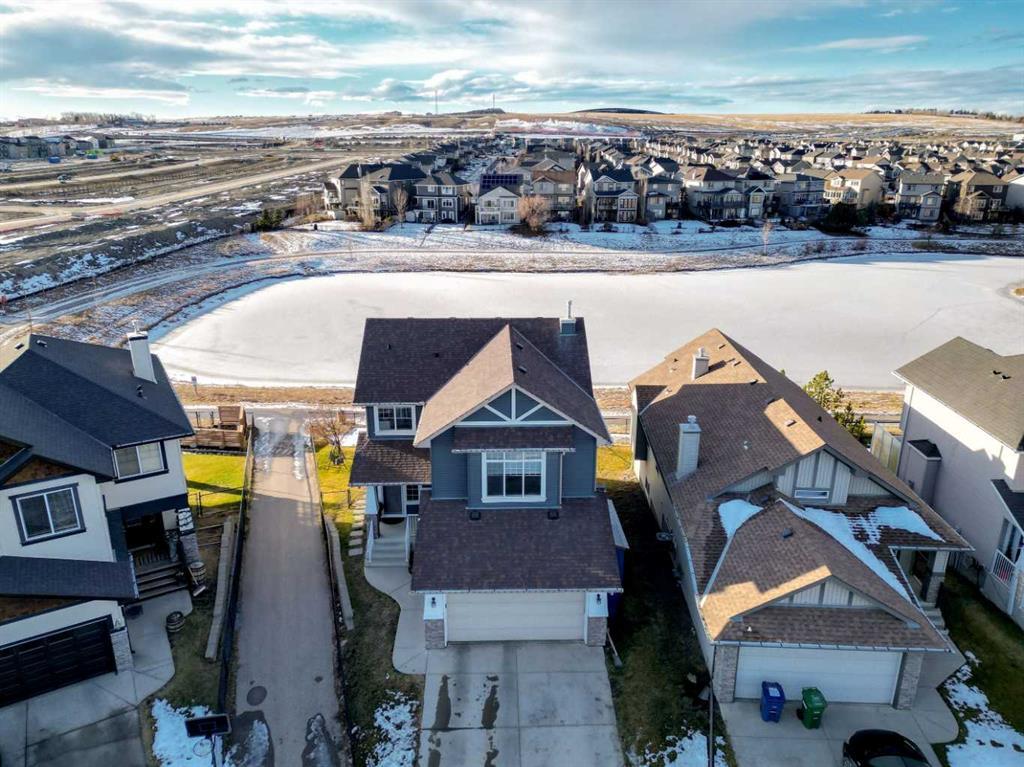 Wow, Welcome Home to this absolute incredibly Gorgeous Dream Home in Sagewood with fully finished WALK Out Basement, backing on to the POND. This is a perfect blend of comfort, luxury, and nature. The Scenic waterfront views and the large pie-shaped lot create a Beautiful and inviting atmosphere. Serene walkways around the pond offer a tranquil and picturesque setting. The opportunity to enjoy sunrises on the putting green and winter activities like ice skating by the fire pit add to the charm. With almost 2700 sq ft of spacious living space, including a fully finished walk-out basement, this home provides ample room for a comfortable lifestyle. The open concept layout on the main floor, engineered hardwood floors, and large windows contribute to a bright and airy feel. The Chef’s Gourmet kitchen is designed for both functionality and style, with white cabinets, beautiful granite countertops, a gas range, stainless steel appliances, a corner pantry, and a center island. The kitchen is a focal point for family gatherings and meals with stunning and mesmerizing views of the pond creating long lasting memories with freinds and family. The large living room with a gas fireplace and expansive windows offers a cozy space to relax and enjoy the natural light and views. The large living room with a gas fireplace and expansive windows provides a cozy space to relax and enjoy the natural light and views. The main floor is completed with a half bathroom and an upgraded washer/dryer in the laundry area. Upstairs you will find a spacious bonus room, The Luxurious Master Suite with a walk-in closet and ensuite bathroom featuring a large soaker tub, walk-in shower, and double vanity creates a luxurious retreat. Two additional bedrooms with ample closet space share a full bathroom. The fully finished walk-out basement, with the potential for an illegal basement suite or entertaining space with a wet bar and bathroom, adds versatility to the home. Note: Basement is currently rented as one bedroom studio setting. The southwest-facing backyard with a large deck, glass railings, lower patio, and a putting green is designed for outdoor enjoyment. The oversized double attached garage with added heating provides ample space for projects and storage. Sagewood’s friendly community, proximity to three schools, canals, and nearby amenities make it an ideal location for families. Overall, this dream home seems like a perfect blend of modern living, natural beauty, and thoughtful design. Living in such a welcoming community with convenient amenities nearby must be a truly enjoyable experience! Don't miss out—contact your favourite Realtor today to schedule a viewing and secure this exceptional property for your future.