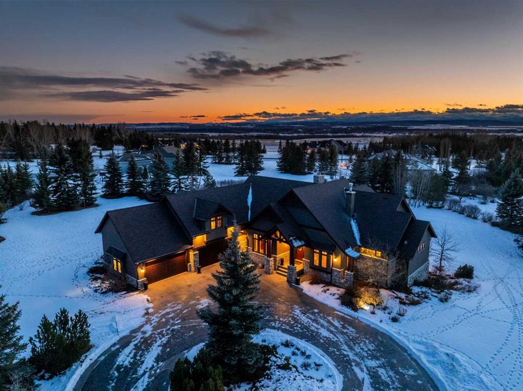 A Springbank Masterpiece built by renowned builder, Taradar Fine Homes, this custom home is perfectly positioned on 2 acres on one of Springbanks most coveted streets. This custom home features luxurious finishes and modern upgrades with nearly 6,000 sqft of living space with a heated 4 car garage, stunning outdoor living spaces and so much more. Move through the grand entrance and be captivated immediately by picturesque views framed by beautiful windows. You will feel welcomed immediately with rich hardwood flooring, soaring vaulted ceilings, and a modern open floor plan leading you to the main living area. Relax in the living room with tons of seating space, oversized windows brightening the room with natural light, and a stunning masonry fireplace guiding you to the gourmet kitchen. The family chef will appreciate the abundance of custom cabinetry, butler pantry with a new wine fridge, and large island with a breakfast bar for prepping meals. The kitchen boasts top of the line appliances including Thermador, Wolf & Sub-Zero. Enjoy hosting family and friends in the formal dining room beautifully lit by the hanging chandelier or the convenience of your home office filled with practical built-ins. Escape to the Primary Retreat boasting a cozy fireplace, a spa-like 5 pc ensuite, and a huge walk-in closet with organizers. Also on the main floor is the laundry room and a powder room. Guests will appreciate the private loft with a spacious bedroom, walk-in closet, and 3 pc ensuite. Descend to the walk-out lower level and be greeted into an entertainers dream with an expansive recreation & family room containing 5.1 theatre speakers, heated floors, a fully equipped bar, a 500+ bottle wine cellar, and easy access to the massive backyard patio and greenspace, anchored by another masonry fireplace. Additionally, the walk-out level has a workshop, gym/fitness space, a craft room, two generously sized bedrooms, a 4 pc bath, and abundant storage space. The dreamy backyard is truly the cherry on top with extensive outdoor living spaces including a deck perfect for summer BBQs and relaxation, a golf putting green, an included hot tub, a fire pit, and plenty of private outdoor space surrounded by scenic landscaping. Additional features include a heated 4 car garage with a 240V power outlet, installed speakers in 11 zones, custom blinds and window coverings, insulated interior walls and floors, heated floors in ensuite and loft, and a 29 zone irrigation system to name a few. Just as impressive as the fit & finish is what's behind the walls; including efficient high-velocity fan coil heating, central AC (units replaced in 2022), full bed natural stone, and more. Enjoy the tranquility of acreage living with spectacular SW mountain views, blended with the urban conveniences of being less than 10 mins to shopping and dining, 5 mins to the newly completed ring-road, and within 10 mins of some of Alberta’s most sought after private and public schools. Book your private showing today!